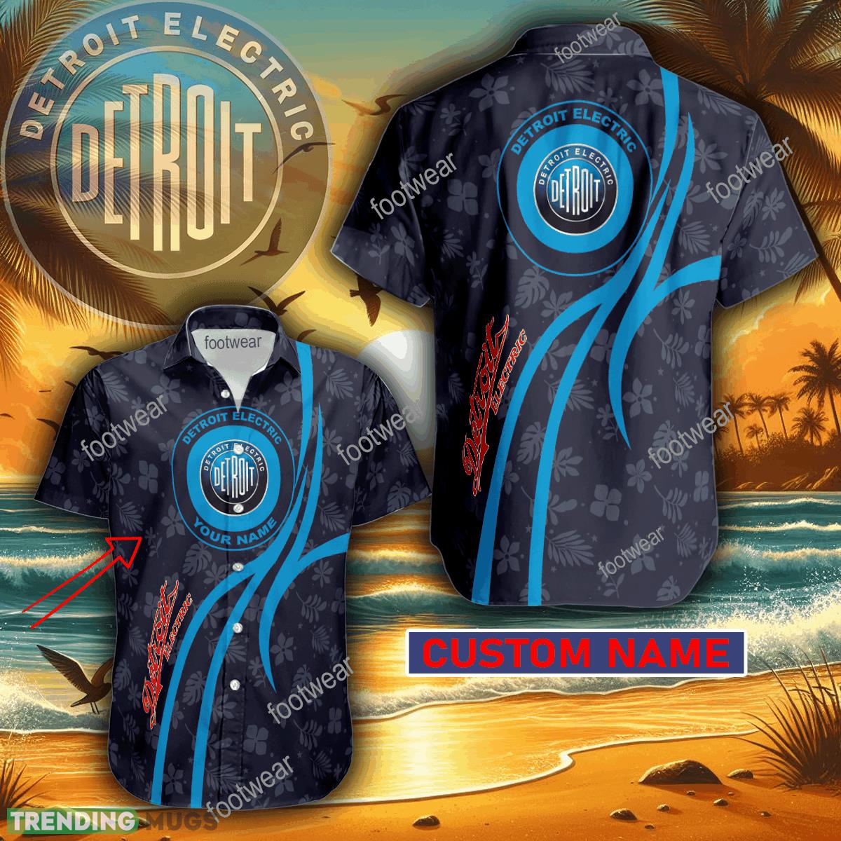 Car Racing Detroit Electric Hawaiian Shirt Design Gift Fans Summer Holidays Custom Name Details: