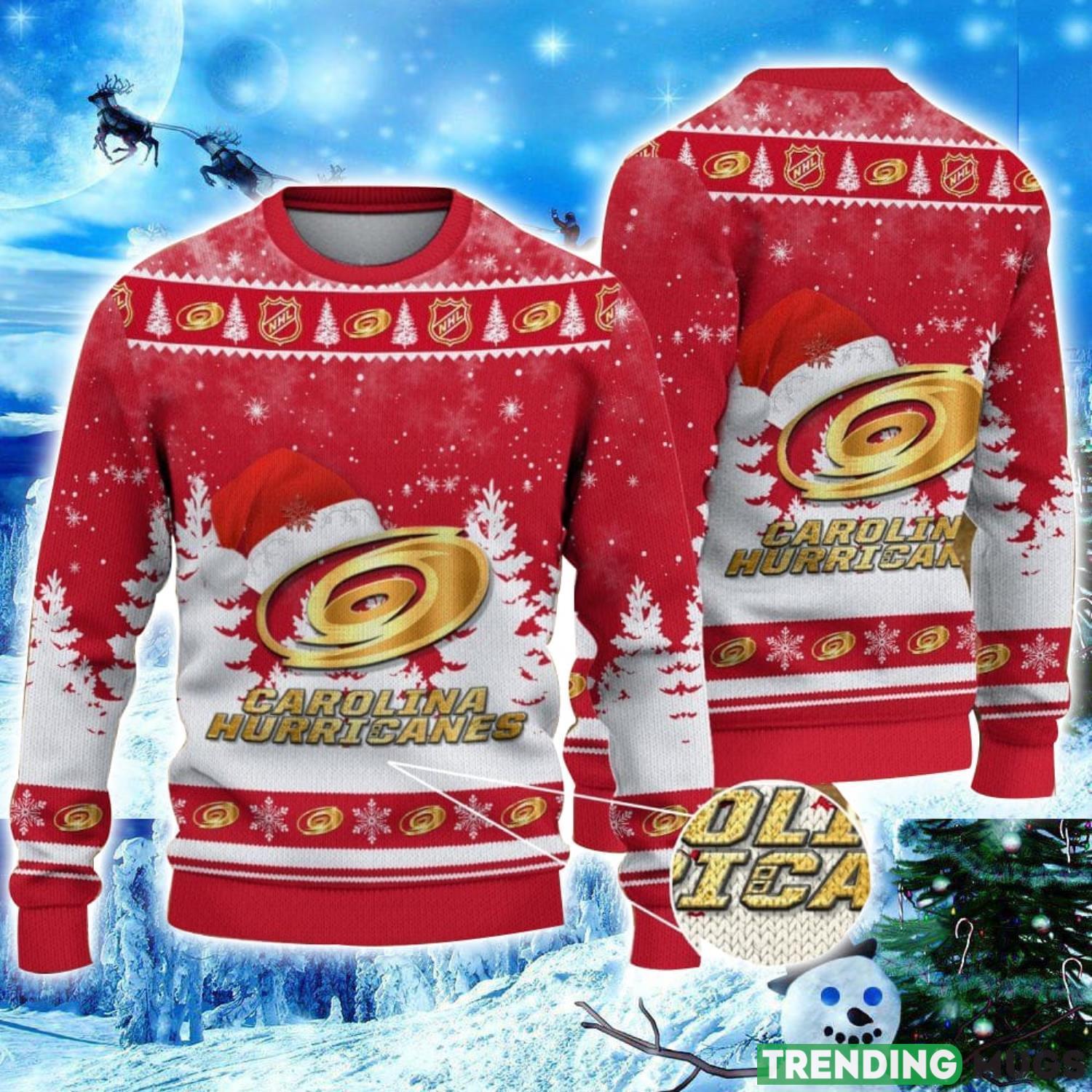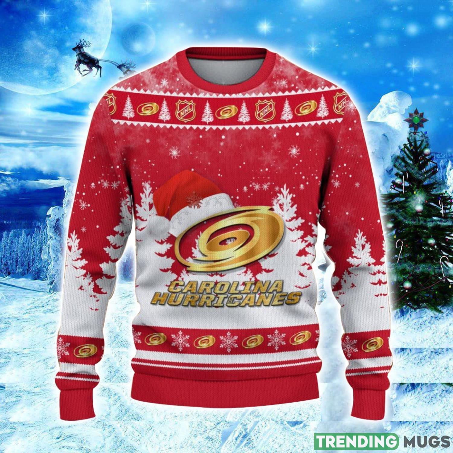 Carolina Hurricanes Logo Wearing Santa Hat Christmas Gift Ugly Christmas Sweater Christmas Gift Ideas Informations: