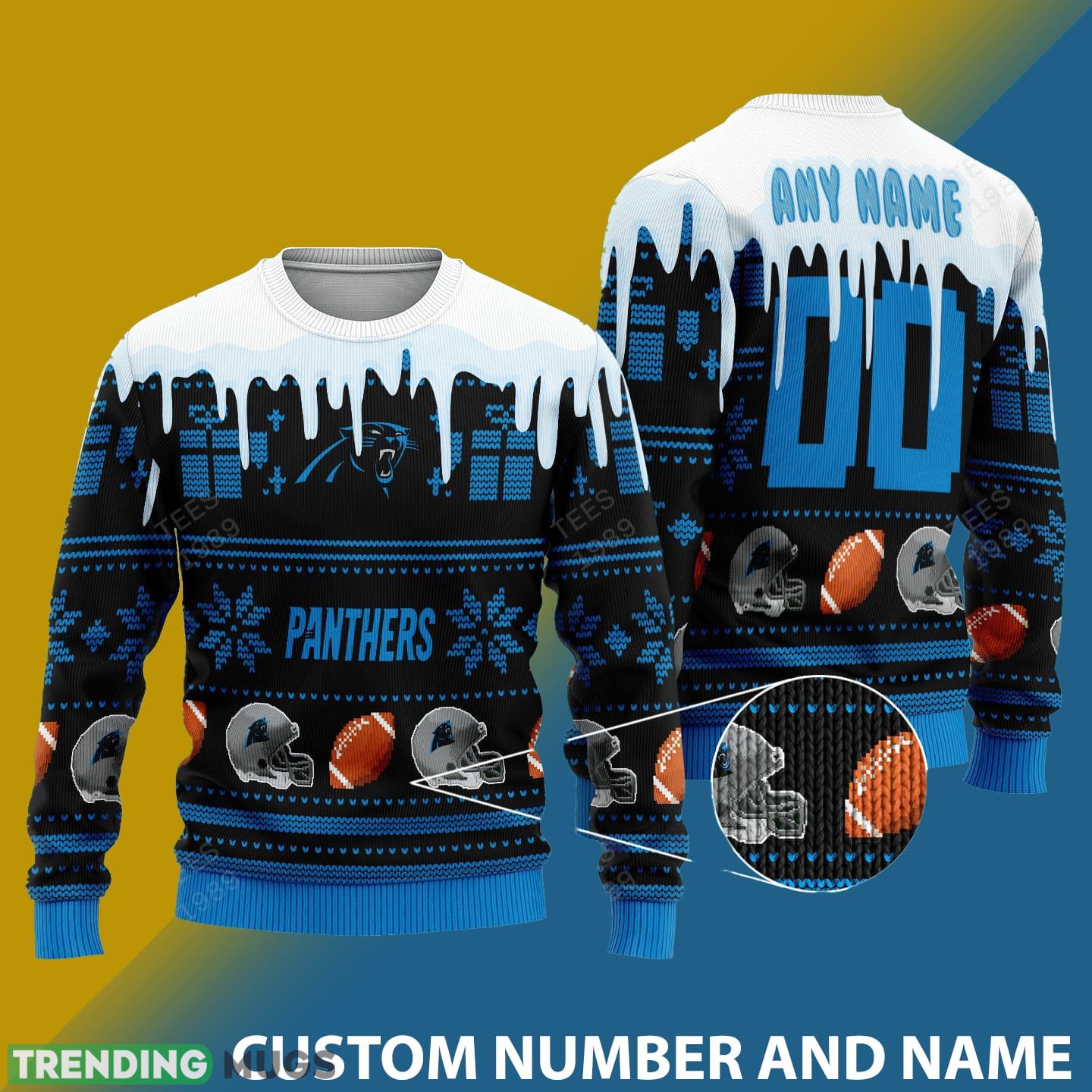 Don’t miss out on the opportunity to showcase your Carolina Panthers loyalty this holiday season. Order your Carolina Panthers Graphics NFL Snowflakes Reindeer 3D Sweater Custom Number And Name today and be the envy of every Panthers fan out there!