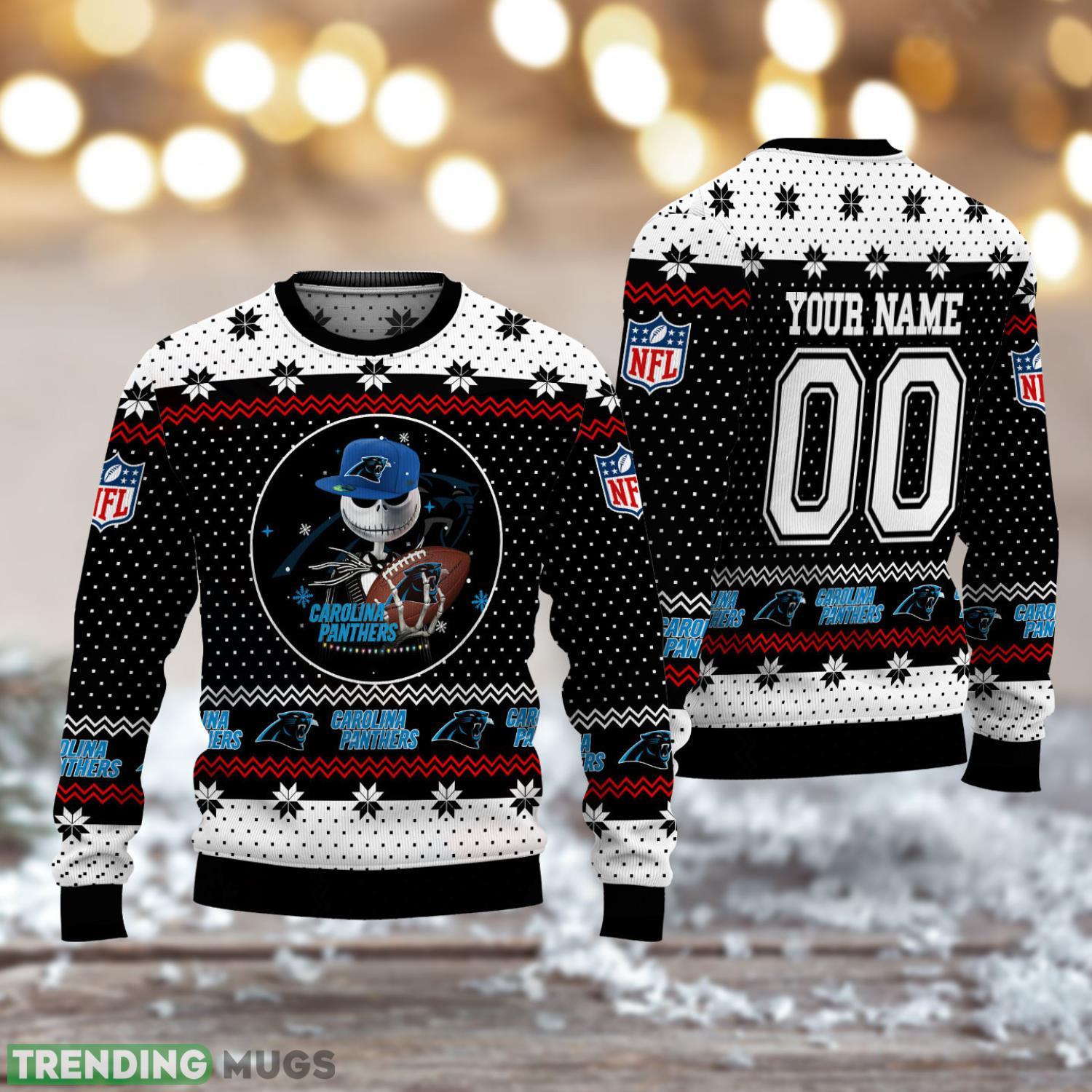 Carolina Panthers Jack Skellington Personalized Name 3D Ugly Christmas Sweater Informations: