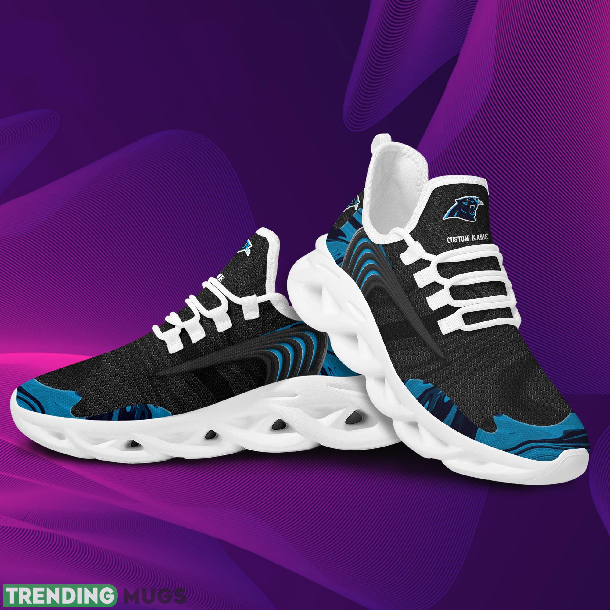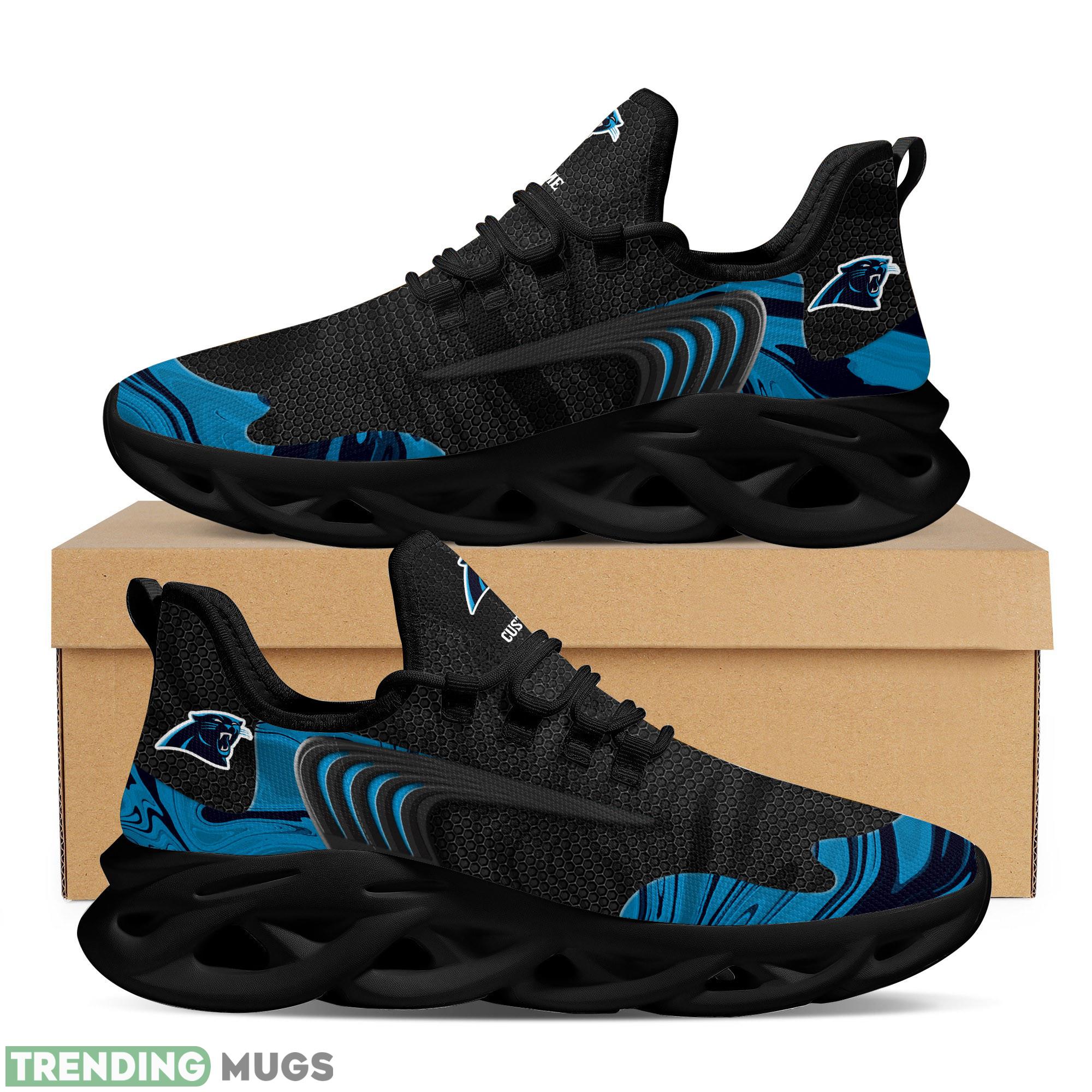 Carolina Panthers Logo Custom Name Running Sneaker Max Soul Shoes In Black information: