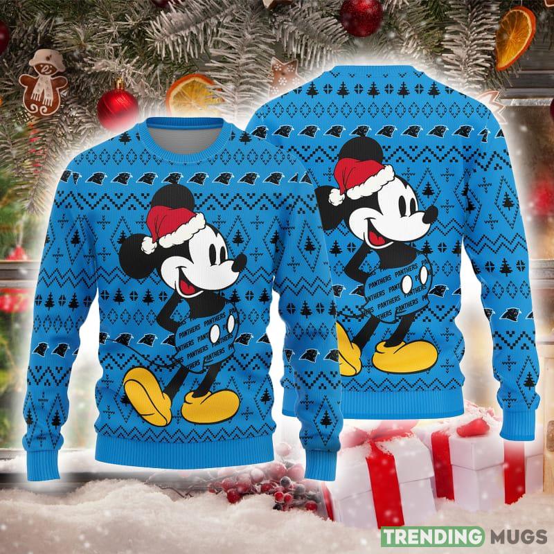 Carolina Panthers Mick Mouse Christmas Pattern Knitted Ugly Christmas Sweater AOP Gift For Men And Women Informations: