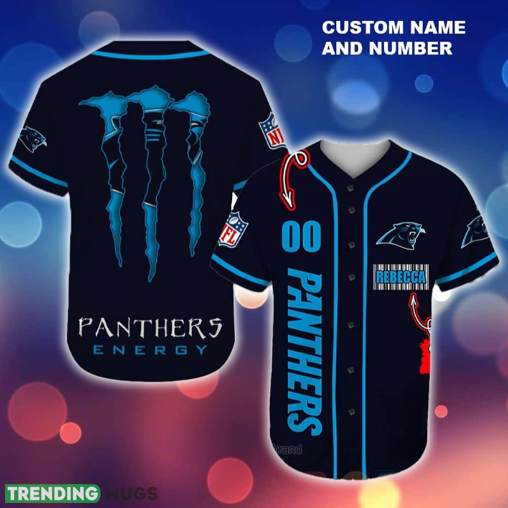 Elevate your game day style with the Carolina Panthers Monster Energy NFL Baseball Jersey Shirt. This custom jersey features your choice of number and name, making it a one-of-a-kind addition to your fan wardrobe. Show off your team pride in ultimate comfort and style with this officially licensed NFL apparel. Whether you’re cheering from the stands or watching from home, this jersey is sure to make a statement. Get yours today and represent your favorite team in a unique and personalized way!