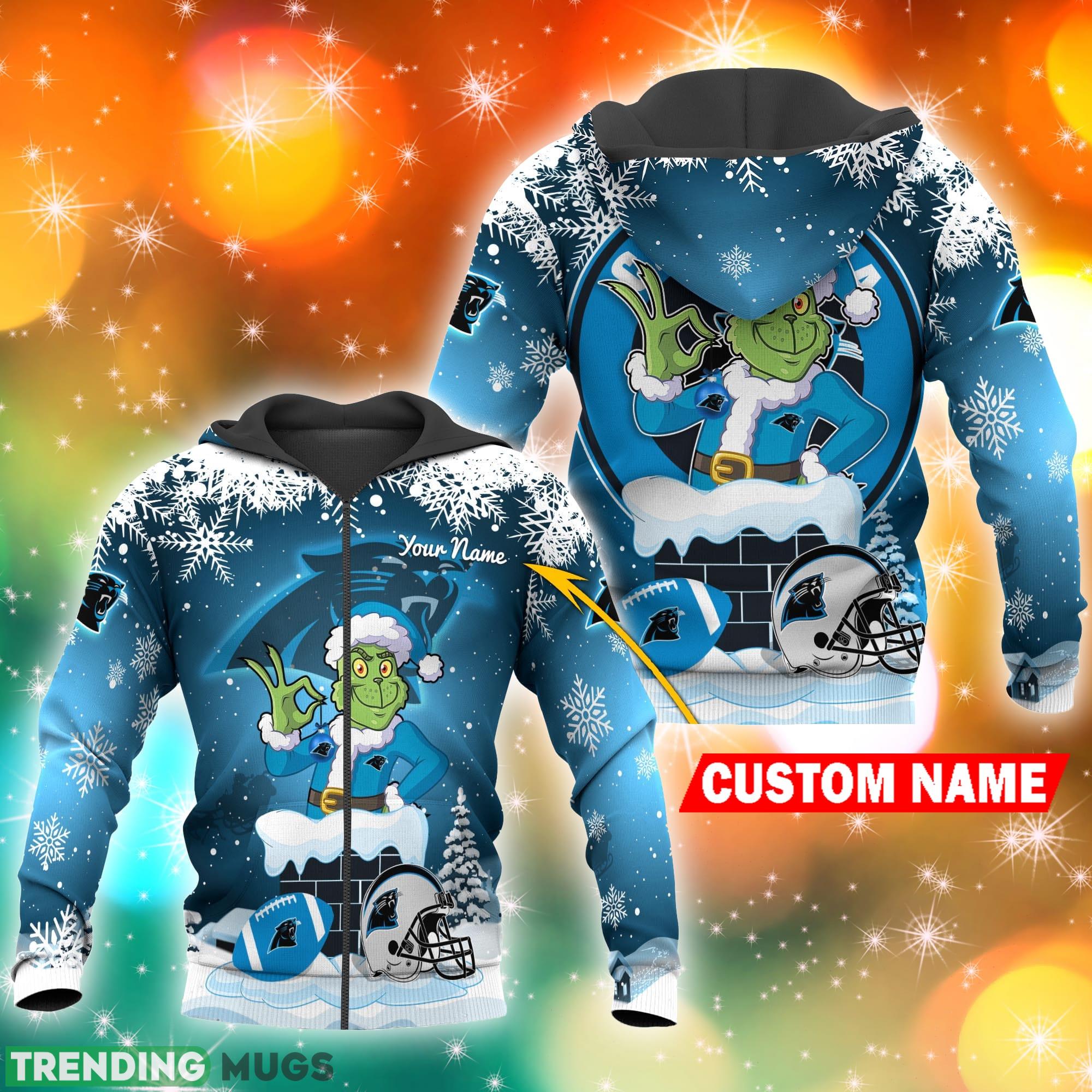 Get ready to show off your Carolina Panthers pride this holiday season with our Carolina Panthers NFL Christmas Grinch in Chimney 3D Hoodie Pullover Prints Custom Name!