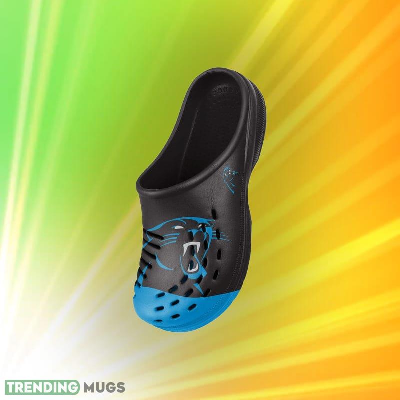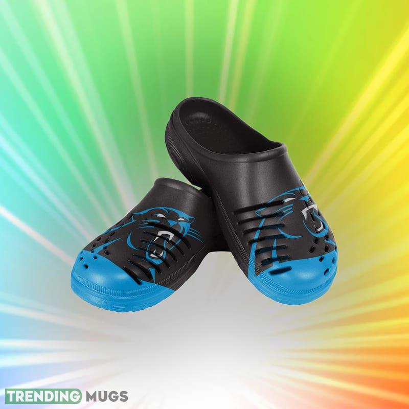 Don’t wait any longer to show your support for your favorite NFL team! Order your Carolina Panthers NFL Men and Women Colorblock Big Logo Clog Shoes for Fans today and step out in style.