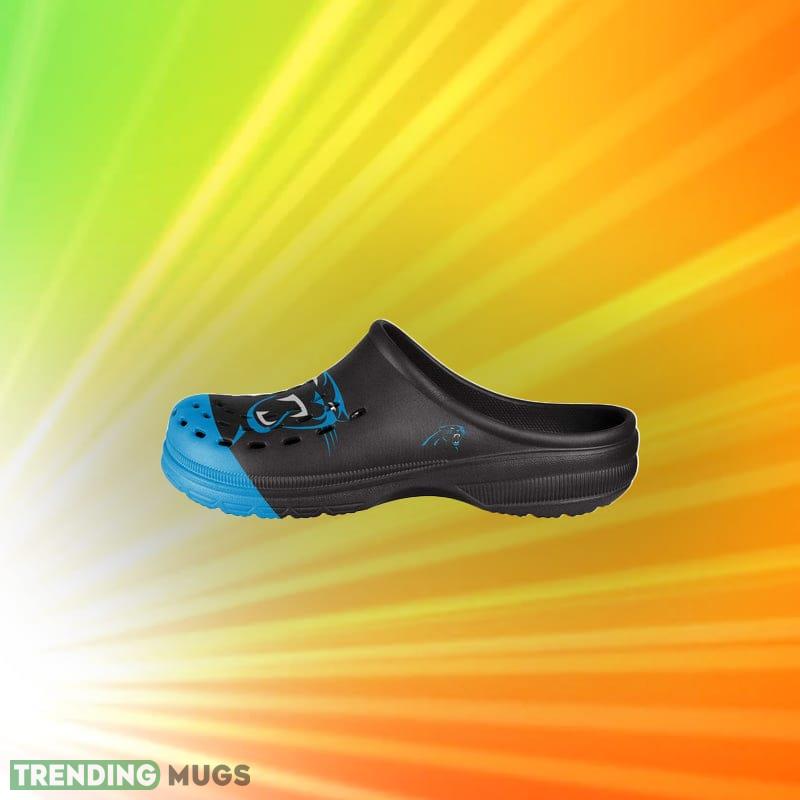 Some of the Carolina Panthers NFL Men And Women Colorblock Big Logo Clog Shoes For Fans photos