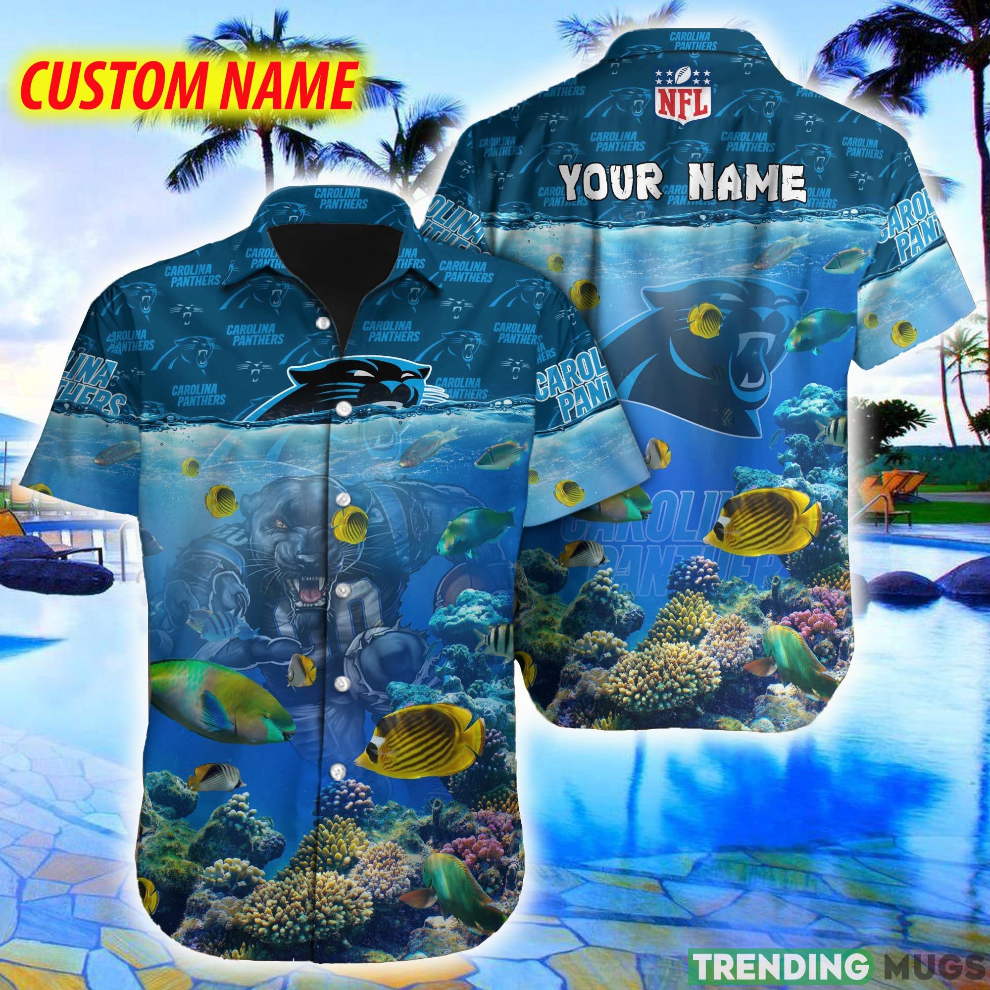 Carolina Panthers NFL Ocean Beach Coral Fish 3D Hawaiian Shirt For Fans Gift Custom Name Hawaiian Shirt