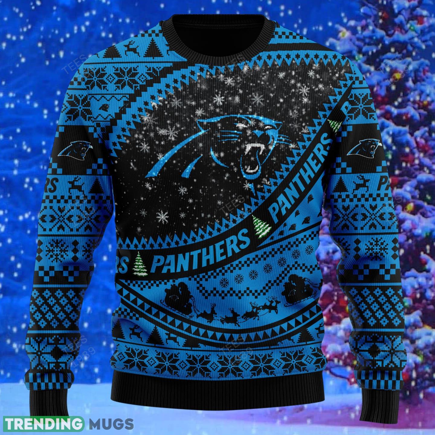 Carolina Panthers NFL Ugly Snowflakes Reindeer 3D Sweater Custom Number And Name – Carolina Panthers NFL Ugly Knitted Sweater Photo 1
