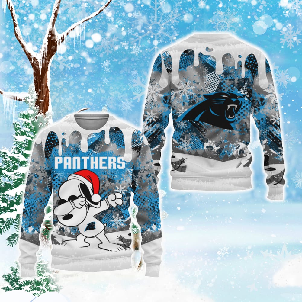 Carolina Panthers Snoopy Dabbing The Peanuts Sports Football American Christmas Dripping Matching Knitted Christmas Sweater All Over Print – 211023-093430