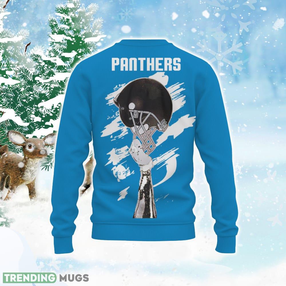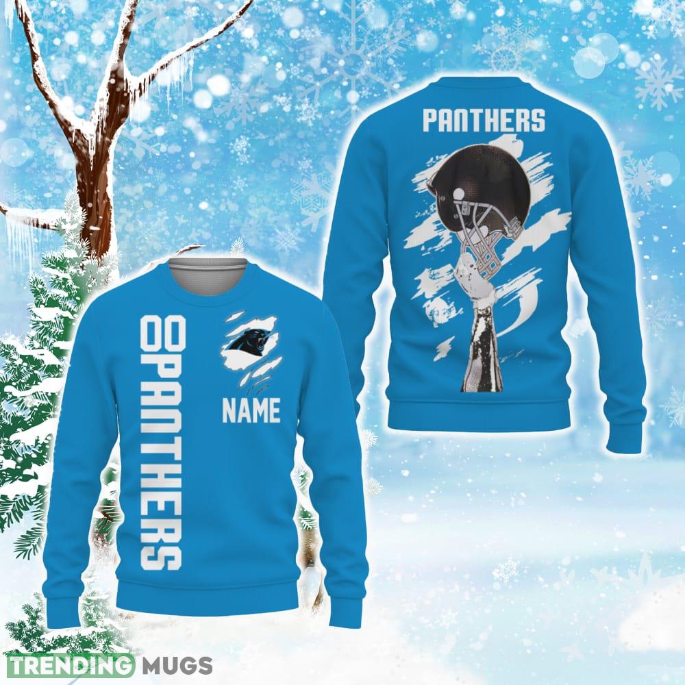 Don’t miss out on this opportunity to showcase your love for the Carolina Panthers in a festive and fashionable way. Order your personalized Carolina Panthers Sports American Football Helmet Ugly Xmas Sweater today and let your team pride shine bright this holiday season!