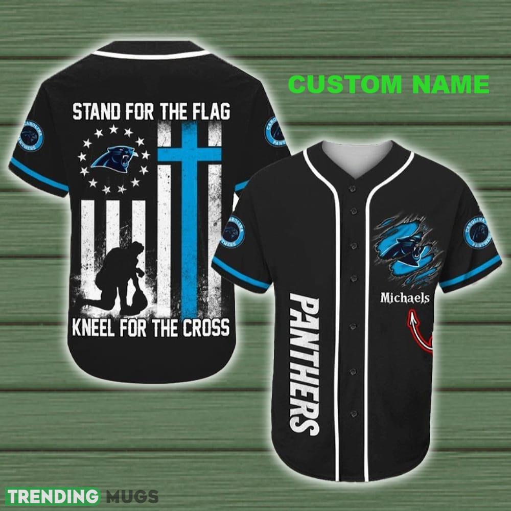 Carolina Panthers Stand For The Flag Kneel For The Cross Baseball Jersey Shirt Custom Name