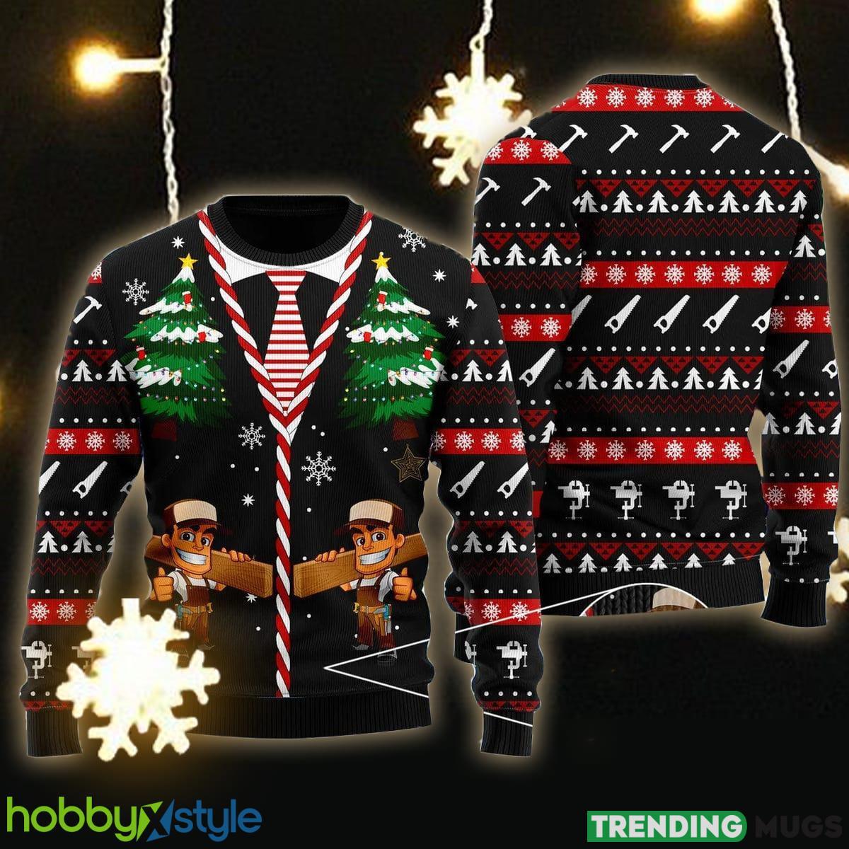 Featuring a cheerful carpenter, proudly giving a thumbs up, this sweater is sure to put a smile on anyone’s face. The intricate details and vivid colors make it a true standout, capturing the essence of the holiday season and showcasing your passion for carpentry in a fun and lighthearted way.