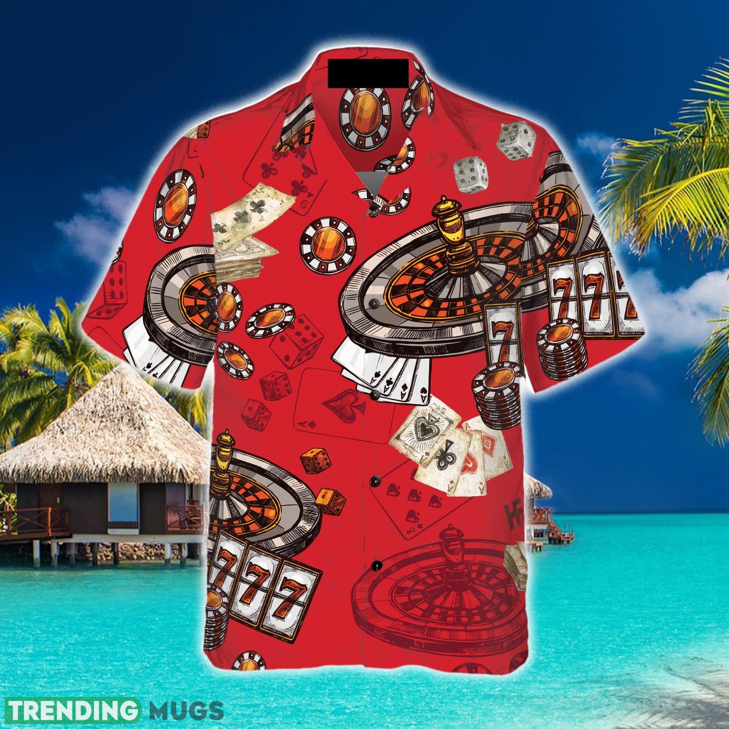 Crafted with meticulous attention to detail, this Hawaiian shirt features a striking red background adorned with a captivating casino pattern. The design includes iconic symbols like playing cards, dice, and lucky sevens, creating a truly unique and playful look.