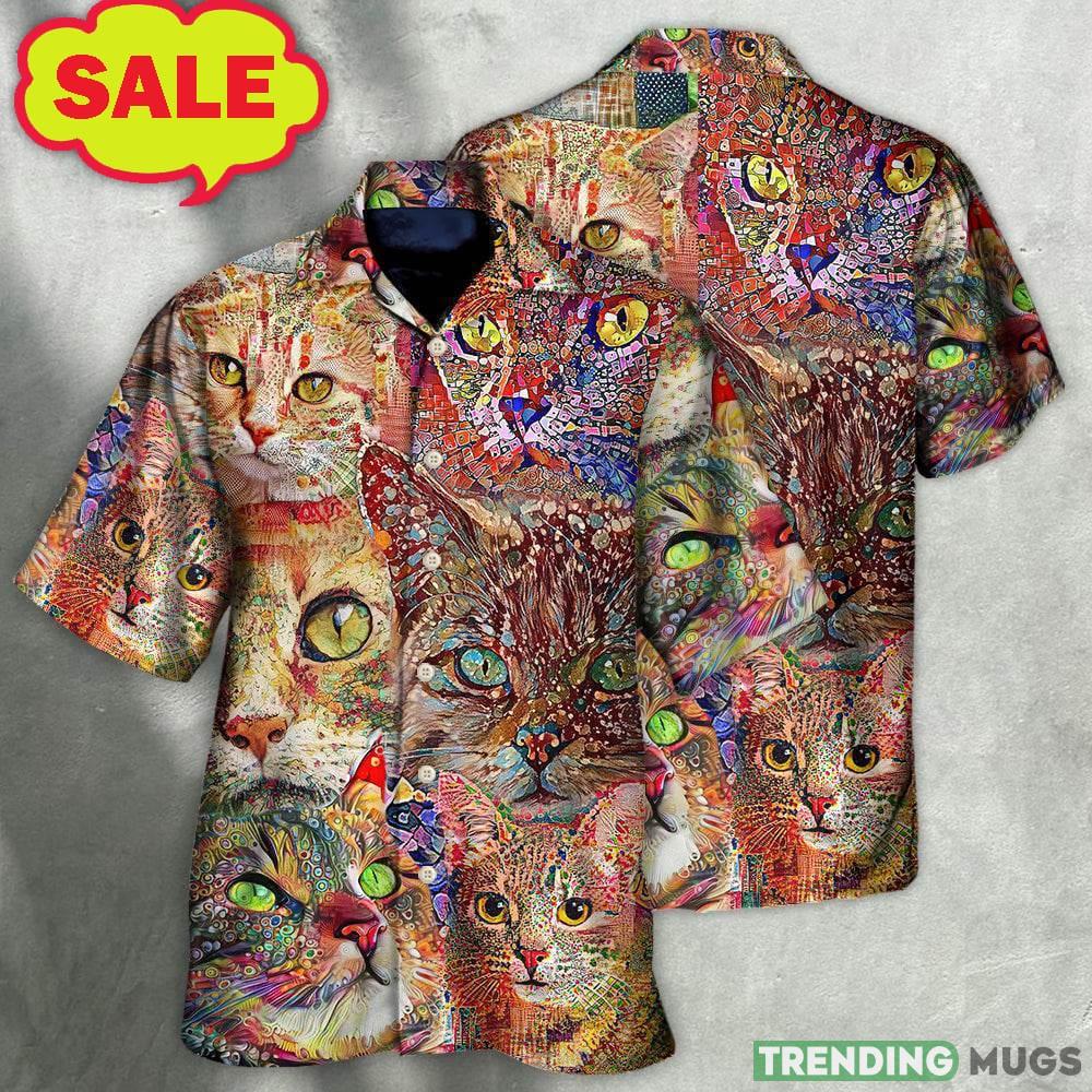 Cat Art Lover Funny Cat Colorful 3D Hawaiian Shirt Animal Gift For Mens Hawaiian Shirt