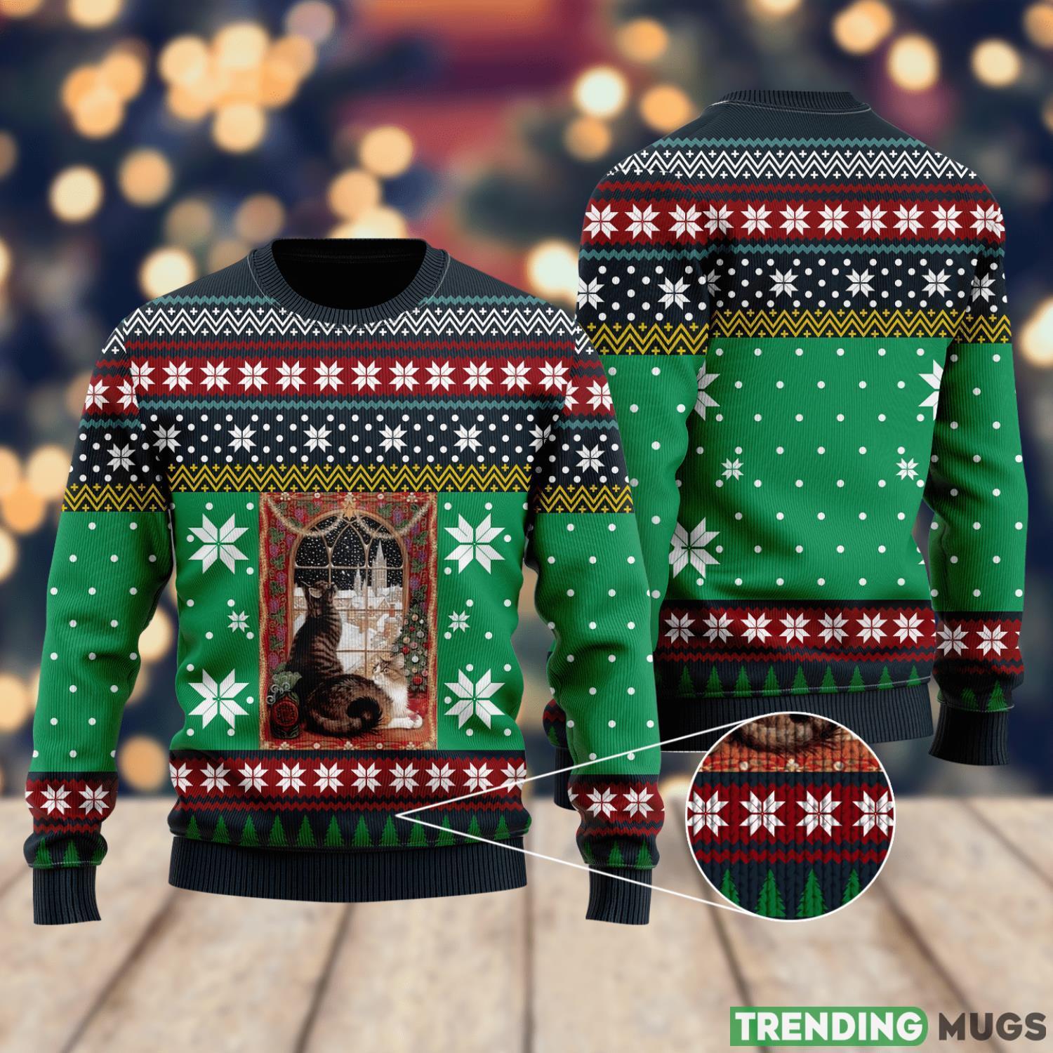 Cat Christmas Snow Window Ugly Christmas Sweater