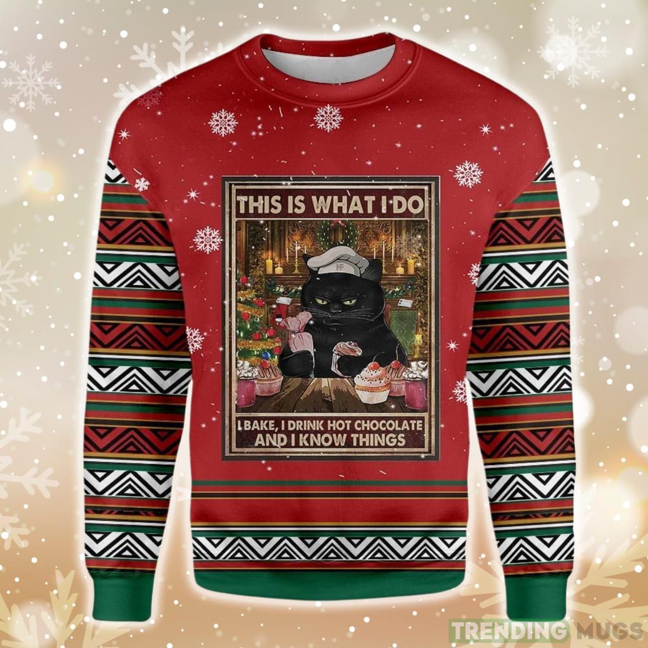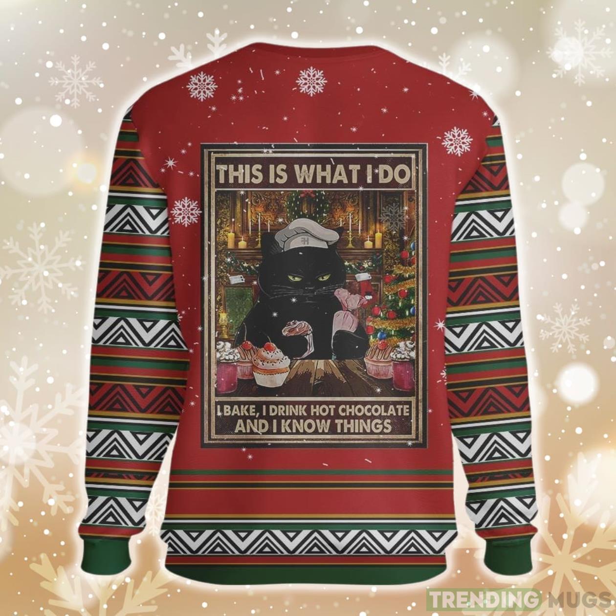 Cat Drink Hot Chocolate, Bake And Know Things Bakery Ugly Christmas Sweater Product Photo 1