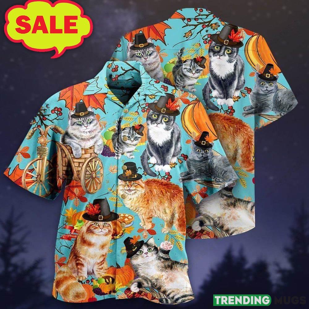 Cat Happy Thanksgiving 3D Hawaiian Shirt Animal Gift For Mens – Cat Happy Thanksgiving 3D Hawaiian Shirt Animal Gift For Mens