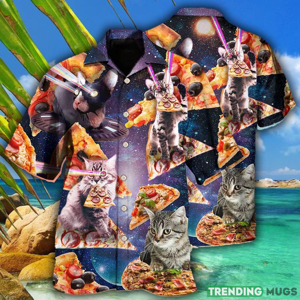 Cat Into The Galaxy Pizza Sky 3D Hawaiian Shirt Animal Gift For Mens Details: