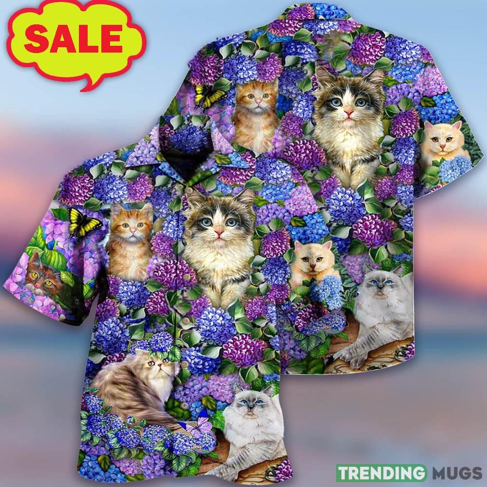 Cat Lovely And Purple Flowers 3D Hawaiian Shirt Animal Gift For Mens – Cat Lovely And Purple Flowers 3D Hawaiian Shirt Animal Gift For Mens