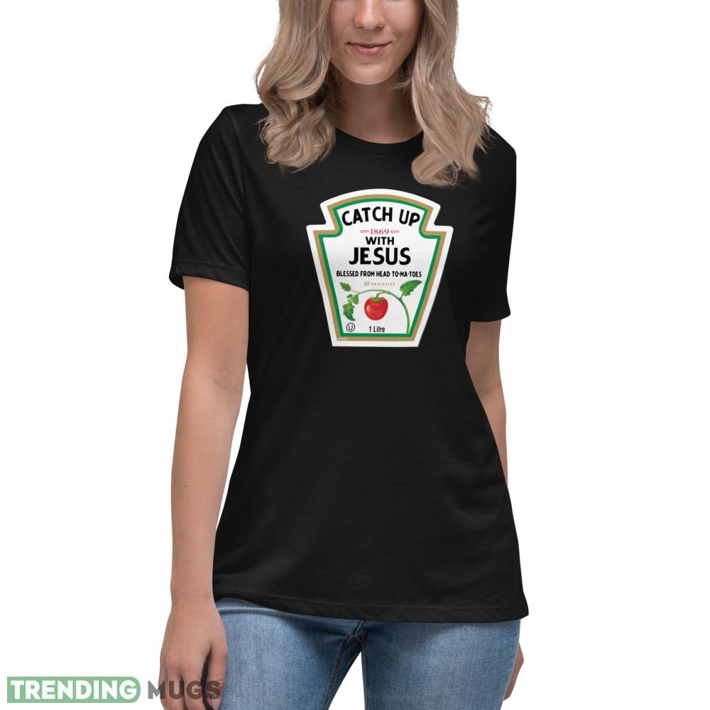 Catch Up With Jesus Ketchup Logo Funny Christian Pun Gift Shirt T Shirt Details
