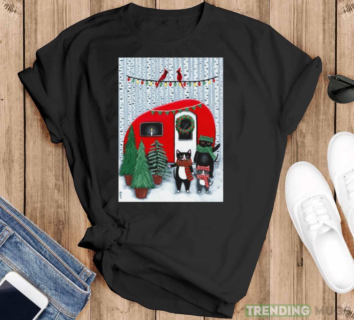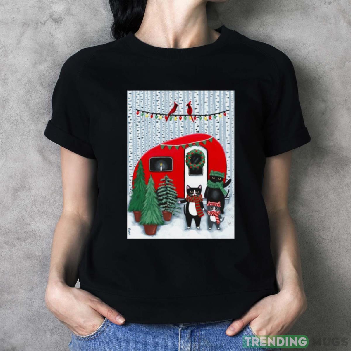 Cats Picking Out The Christmas Tree shirt – Black T-Shirt