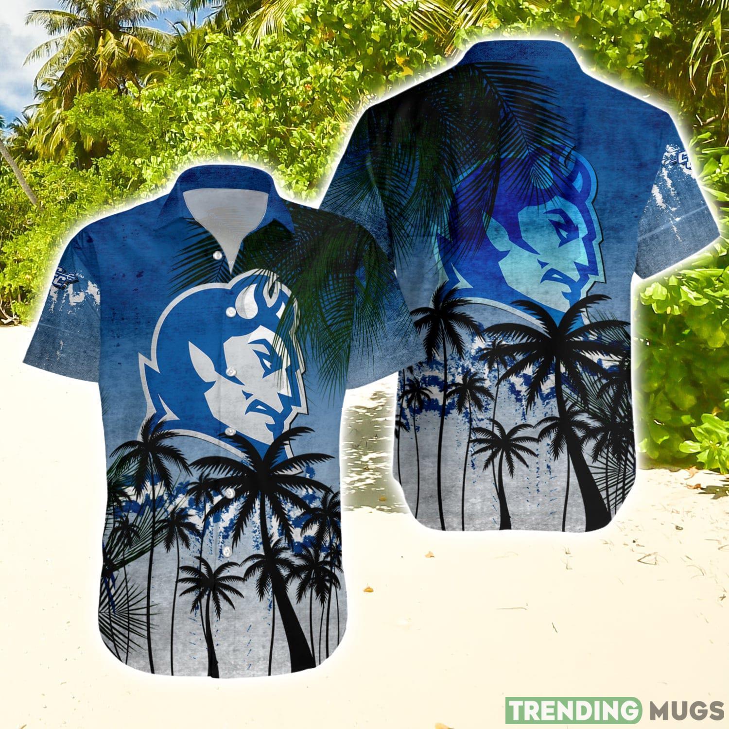 Central Connecticut Blue Devils Hawaiian Shirt Summer Gift Coconut Tree Tropical Grunge Pattern For NCAA Fans Details: