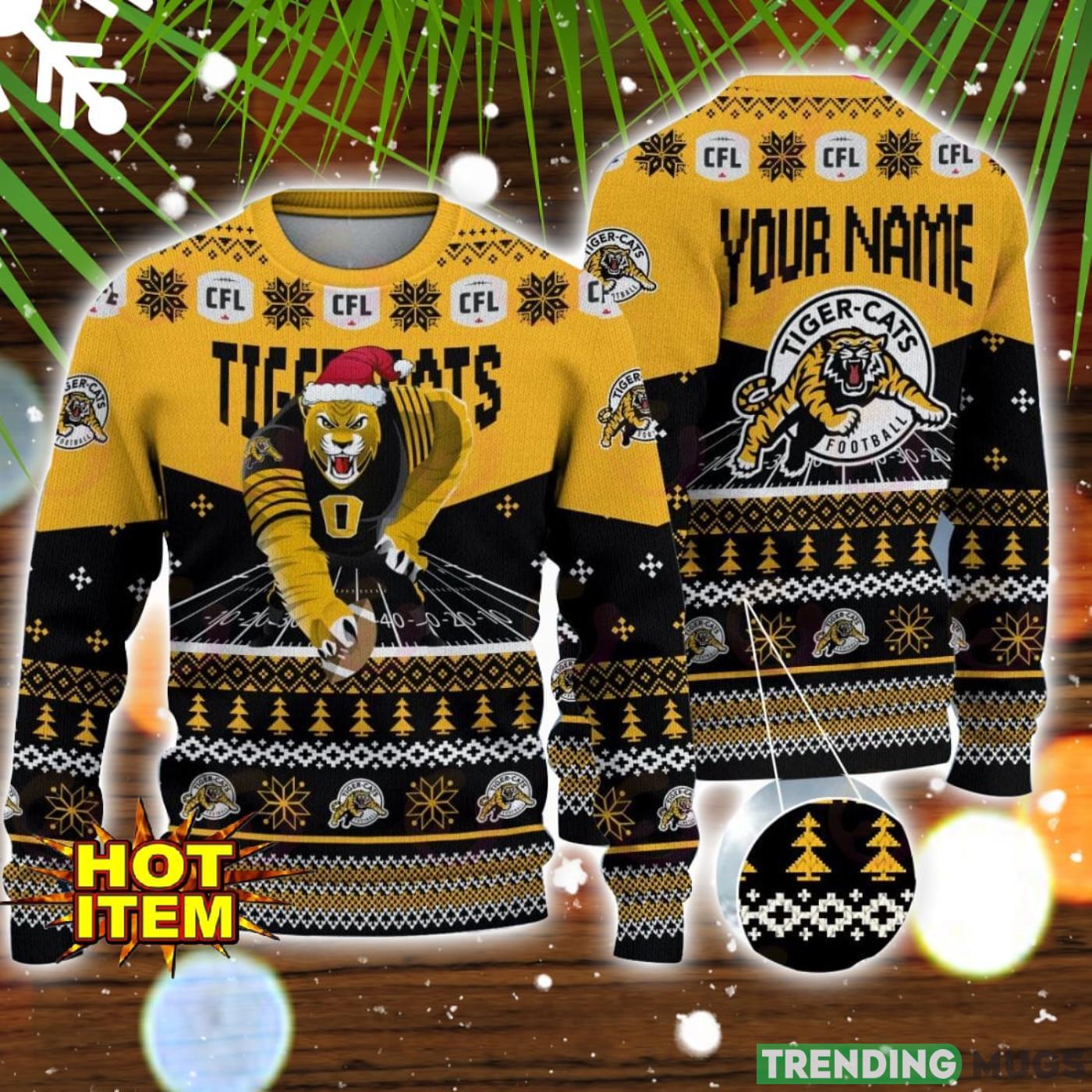 Some of the CFL Hamilton Tiger-Cats Special Mascot Design Ugly Christmas Sweater Christmas Gift For Sport Fans Custom Name photos