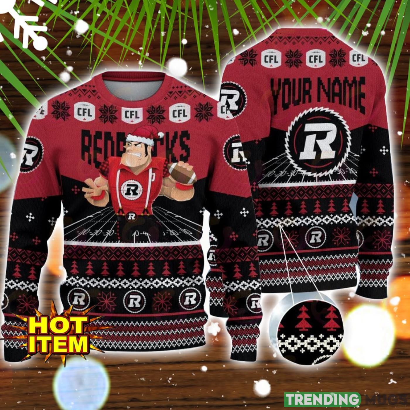 CFL Ottawa Redblacks Special Mascot Design Ugly Christmas Sweater Christmas Gift For Sport Fans Custom Name 3D Sweater