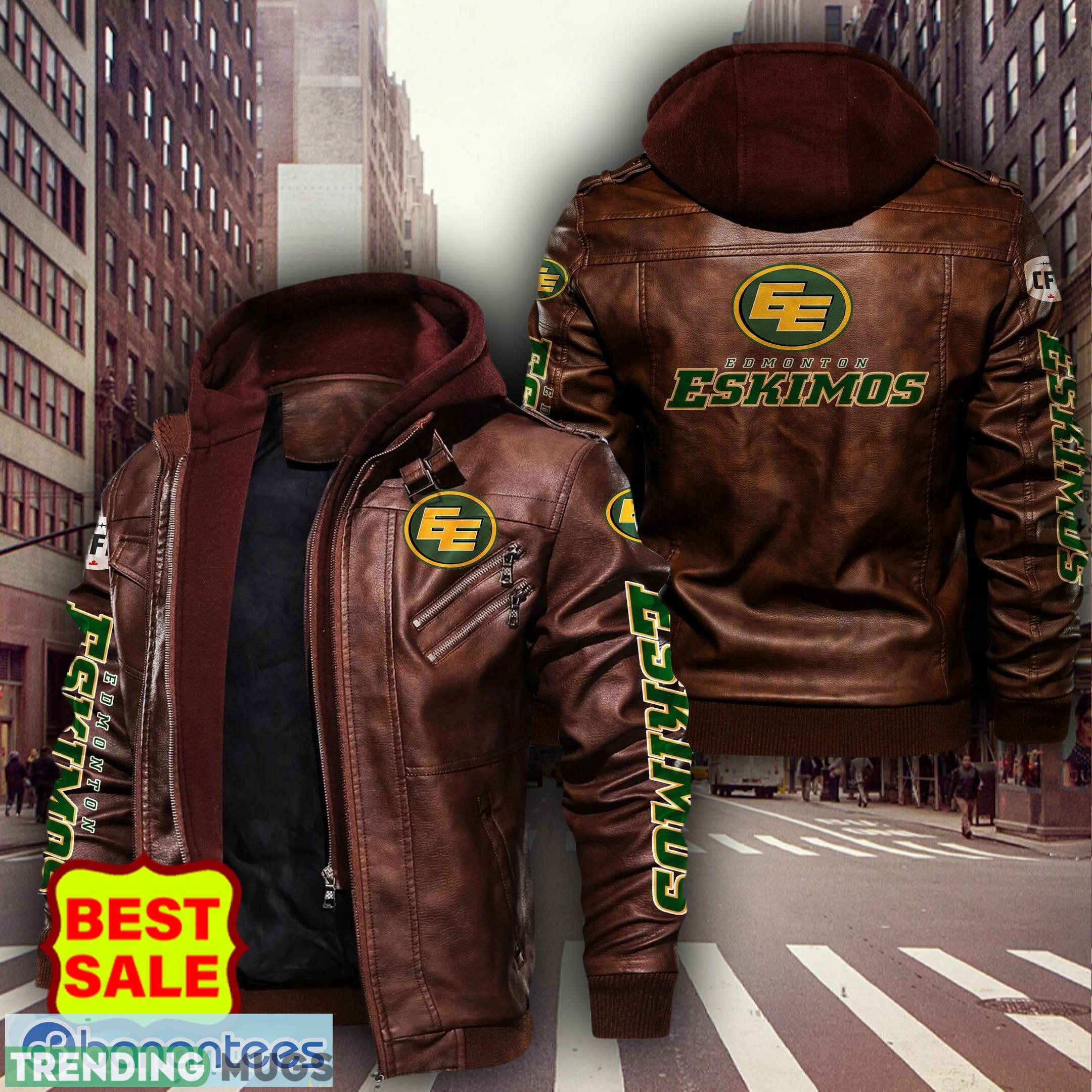 CFL Team Edmonton Eskimos Logo 1 Black Brown Leather Jacket For Fans Material Information