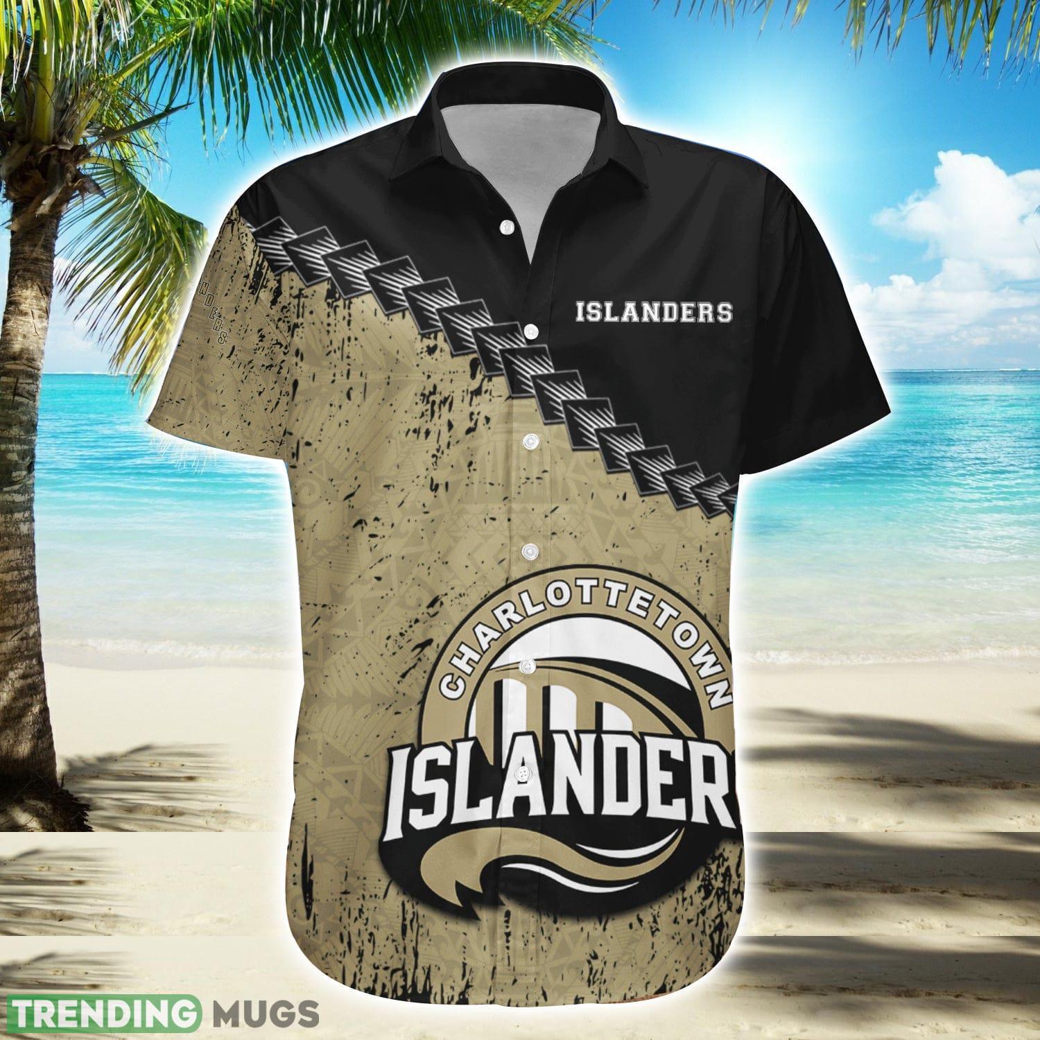 Crafted with meticulous attention to detail, our Hawaiian shirt showcases a mesmerizing blend of classic hockey motifs and Polynesian patterns. The iconic Charlottetown Islanders logo takes center stage, proudly displaying your unwavering support for the team. The grunge-like design adds a touch of edginess, making this shirt perfect for both game nights and casual outings.