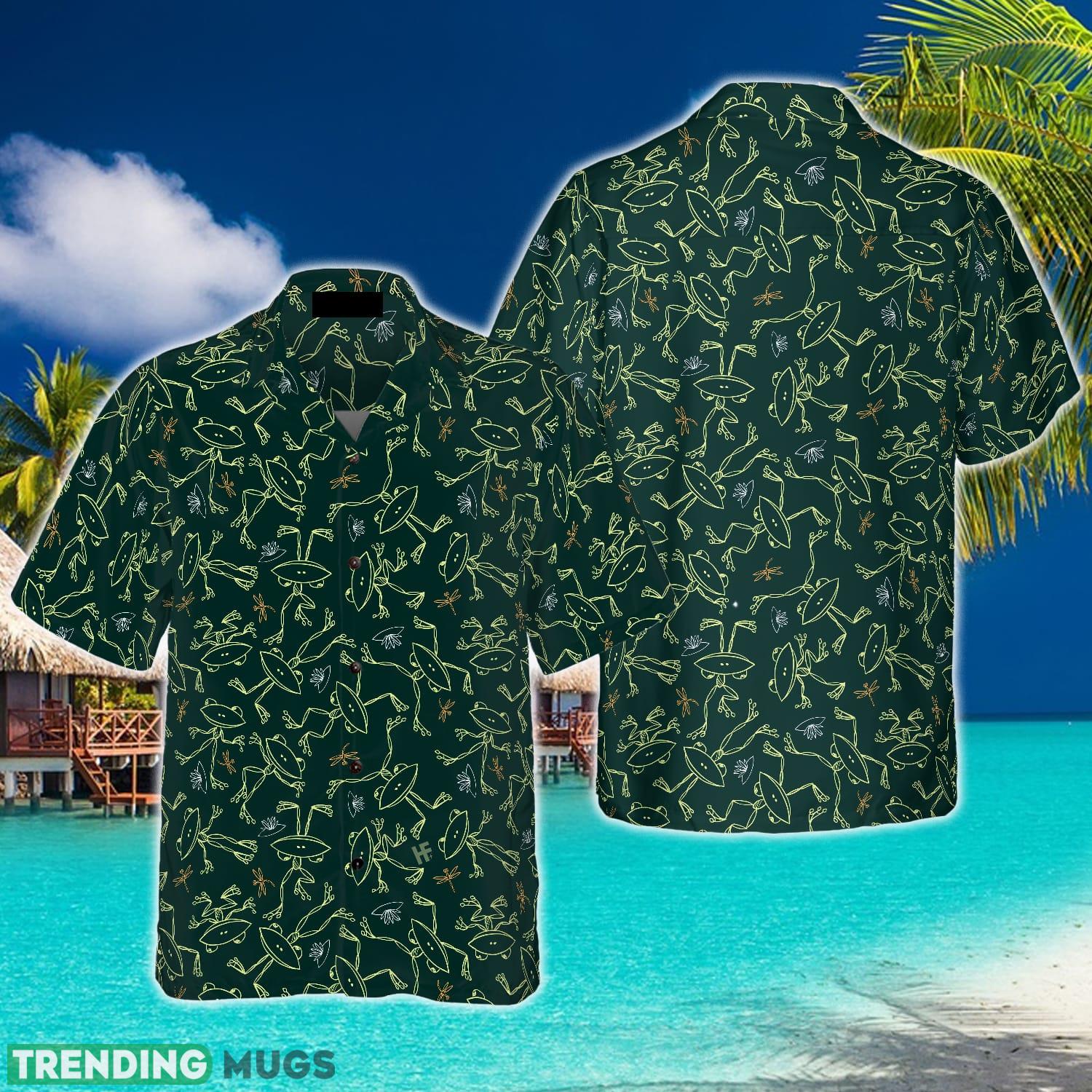 So why wait? Get your hands on our Cheerful Cartoon Frogs & Dragonflies Hawaiian Shirt and be ready to make a splash this summer!