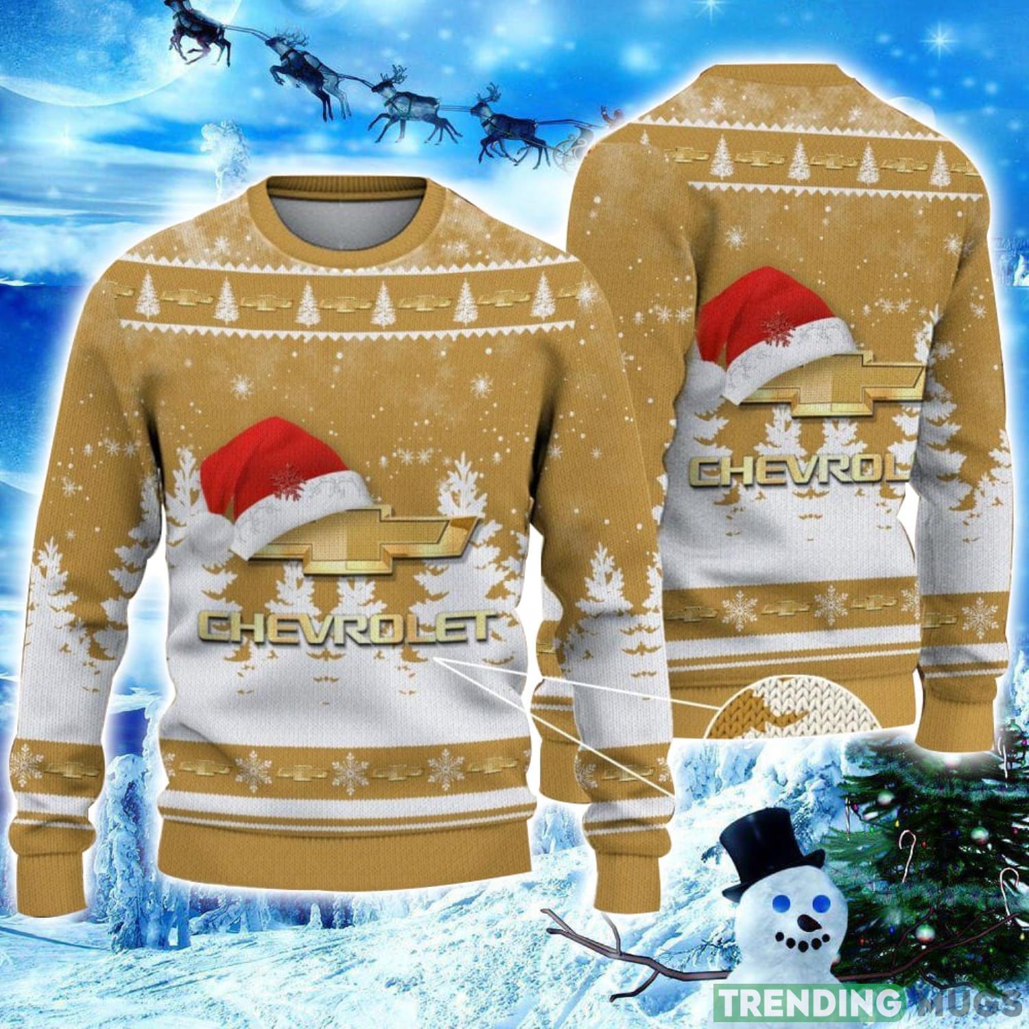 Chevrolet Logo Wearing Santa Hat Christmas Gift Ugly Christmas Sweater Christmas Gift Ideas Product Photo 1