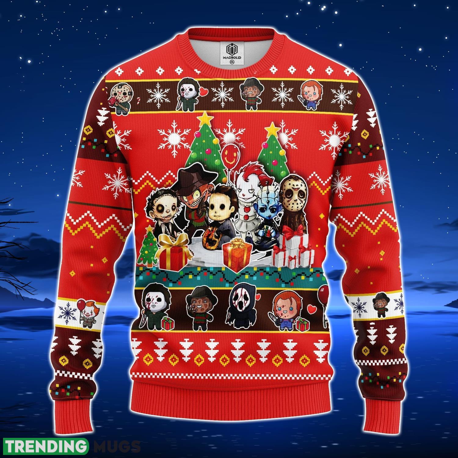 Crafted with the utmost attention to detail, this unique Christmas sweater features an eye-catching design that combines the best of both worlds: chibi horror characters and the traditional Christmas sweater aesthetic. The result? A truly one-of-a-kind piece that is sure to make you the star of any holiday gathering.