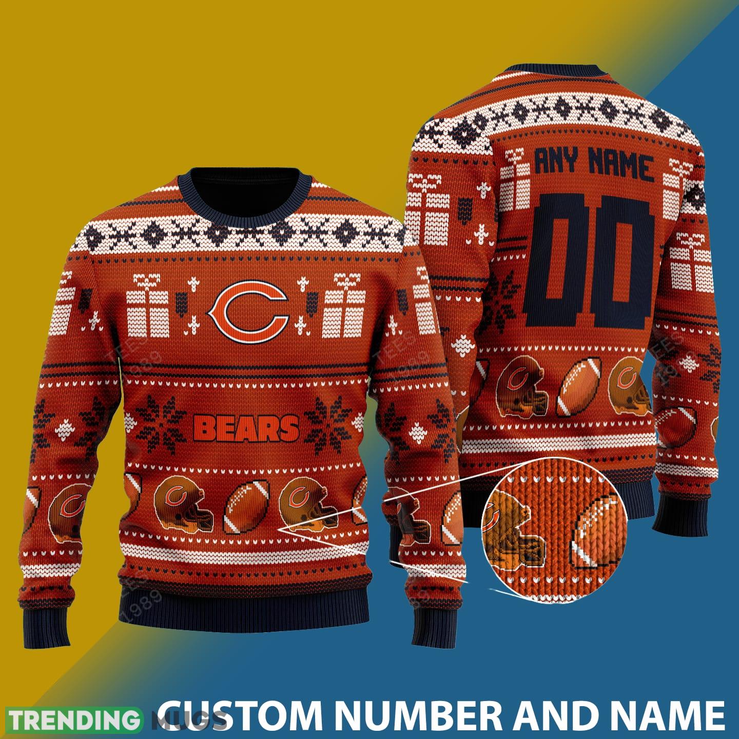But that’s not all – we offer customization options to make this sweater truly your own! Personalize it with your favorite player’s number and name, and let everyone know who your ultimate Bears hero is. Whether you’re heading to a holiday party, tailgating event, or simply cozying up at home, this sweater is sure to make a statement and spark conversations among fellow football enthusiasts.