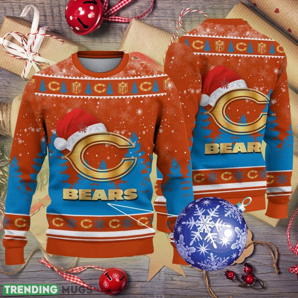 Chicago Bears Logo Golden Fans Santa Hat Tree Knitted Christmas 3D Sweater – Chicago Bears Logo Golden Fans Santa Hat Tree Knitted Christmas 3D Sweater
