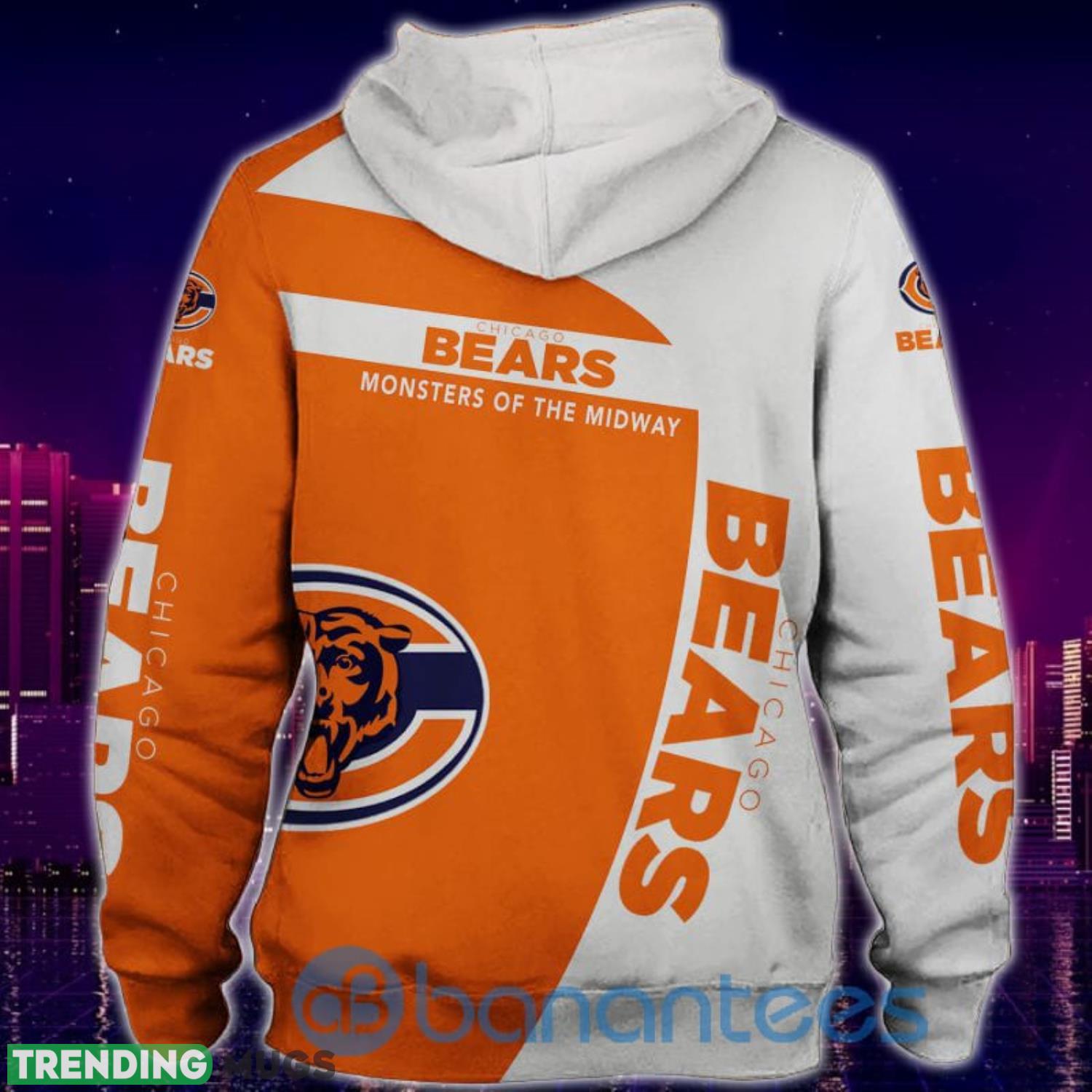 Chicago Bears White And Orange Bear Symbol All Over Printed 3D Hoodie Zip Hoodie Information