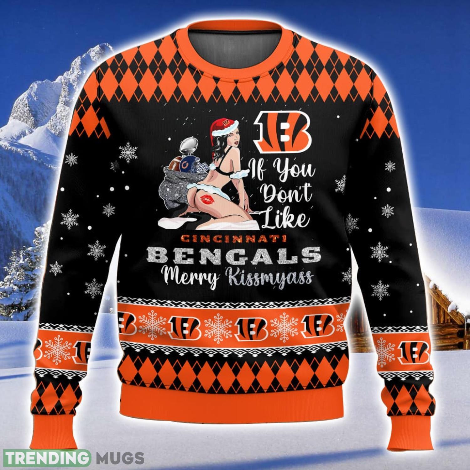 Chicago Bengals Kissmyass 3D All Over Printed Ugly Christmas Sweater Sport Fans Christmas Gift