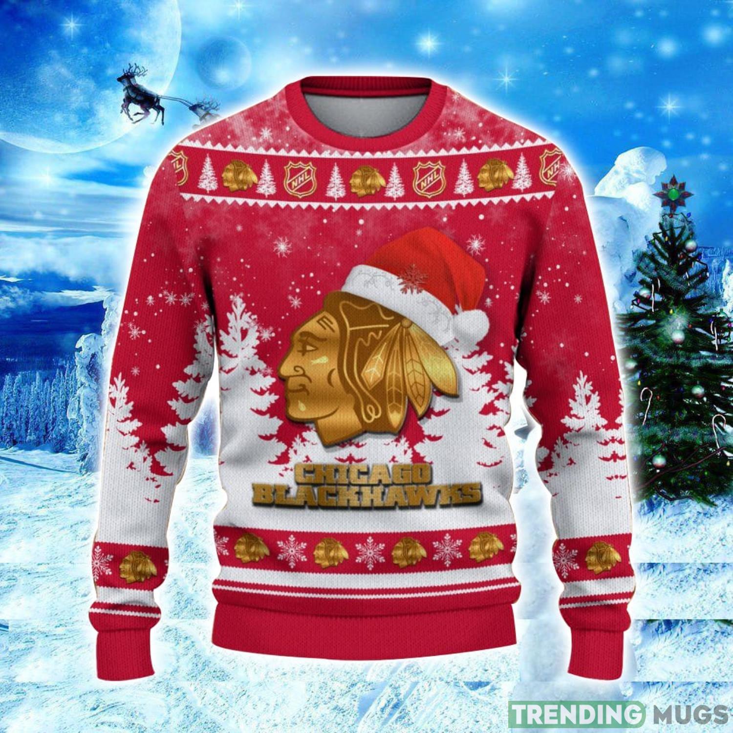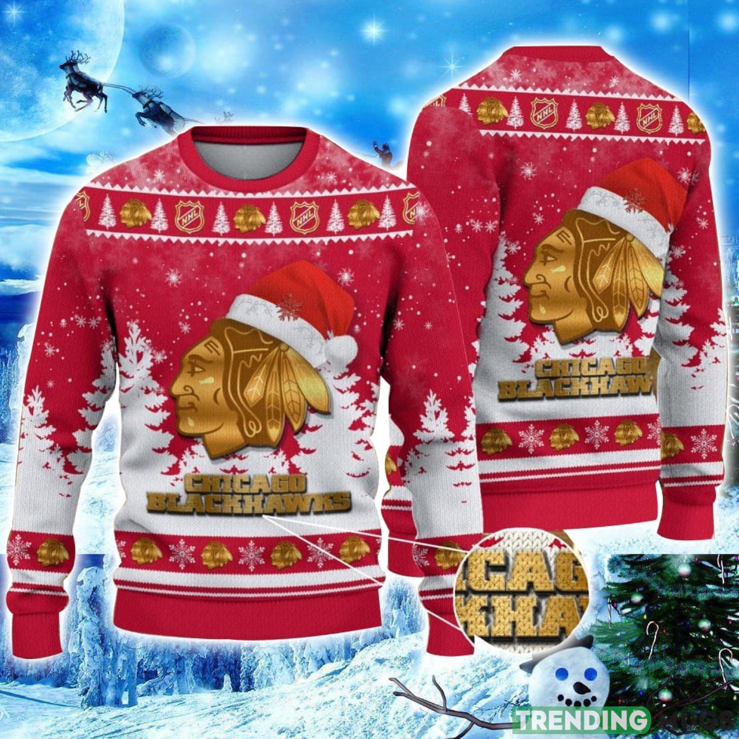 Chicago Blackhawks Logo Wearing Santa Hat Christmas Gift Ugly Christmas Sweater Christmas Gift Ideas Informations:
