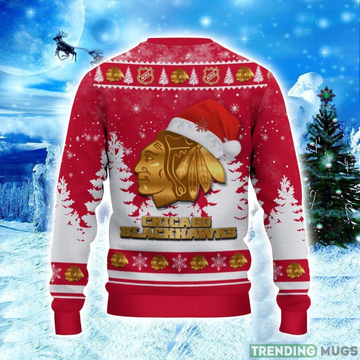 Chicago Blackhawks Logo Wearing Santa Hat Christmas Gift Ugly Christmas Sweater Christmas Gift Ideas Product Photo 2
