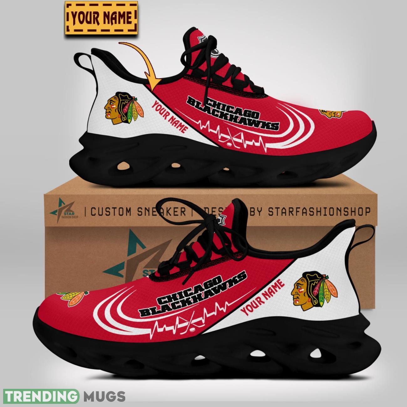 Show your love for the Chicago Blackhawks with these custom name Running Sneakers Sport Max Soul Shoes! Perfect for both men and women who are die-hard Blackhawks fans, these shoes are not only stylish but also comfortable for all-day wear. Whether you’re hitting the gym or running errands, these sneakers will keep you looking sporty and chic. Don’t miss out on the opportunity to showcase your team pride with these Chicago Blackhawks Lover Running Sneakers!