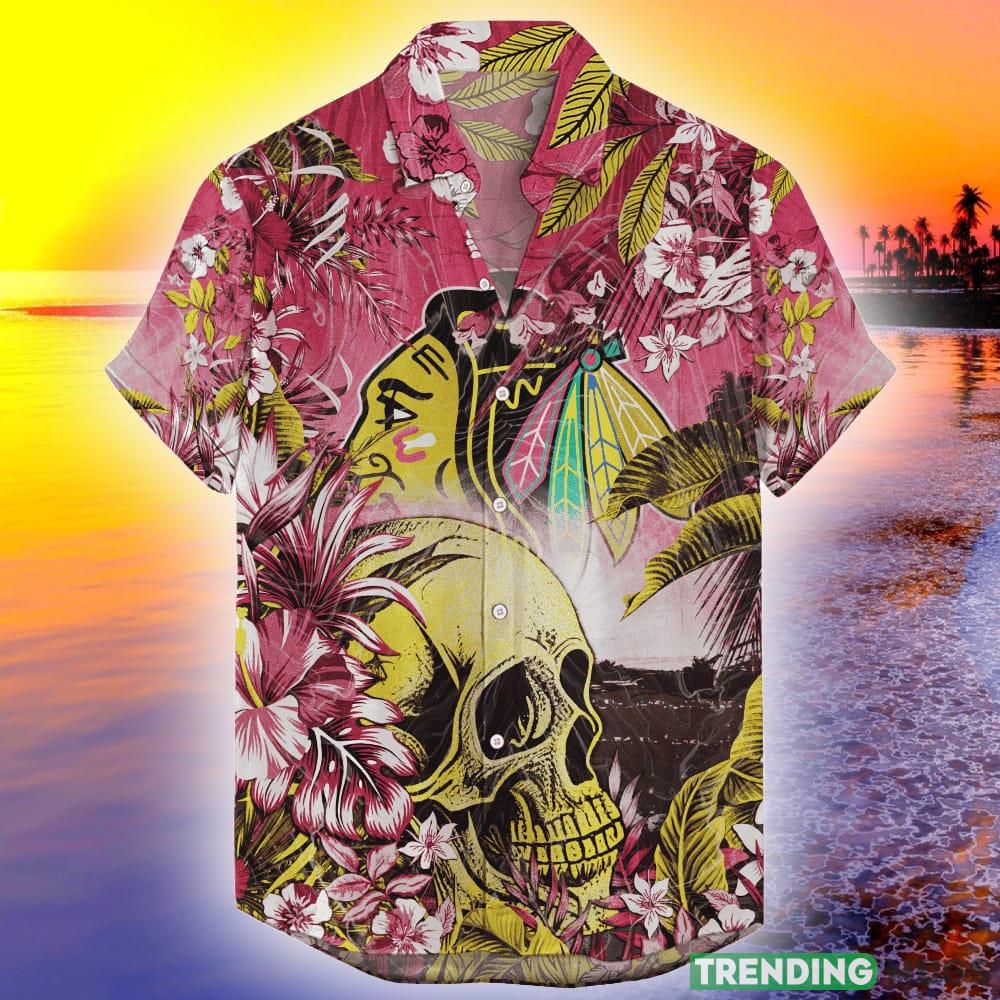 Not only is this shirt a must-have for Blackhawks fans, but it also makes a fantastic gift for any occasion. Whether you’re surprising a loved one, celebrating a special event, or simply treating yourself, this NHL Tropical Skull Hawaii Shirt is a guaranteed winner.