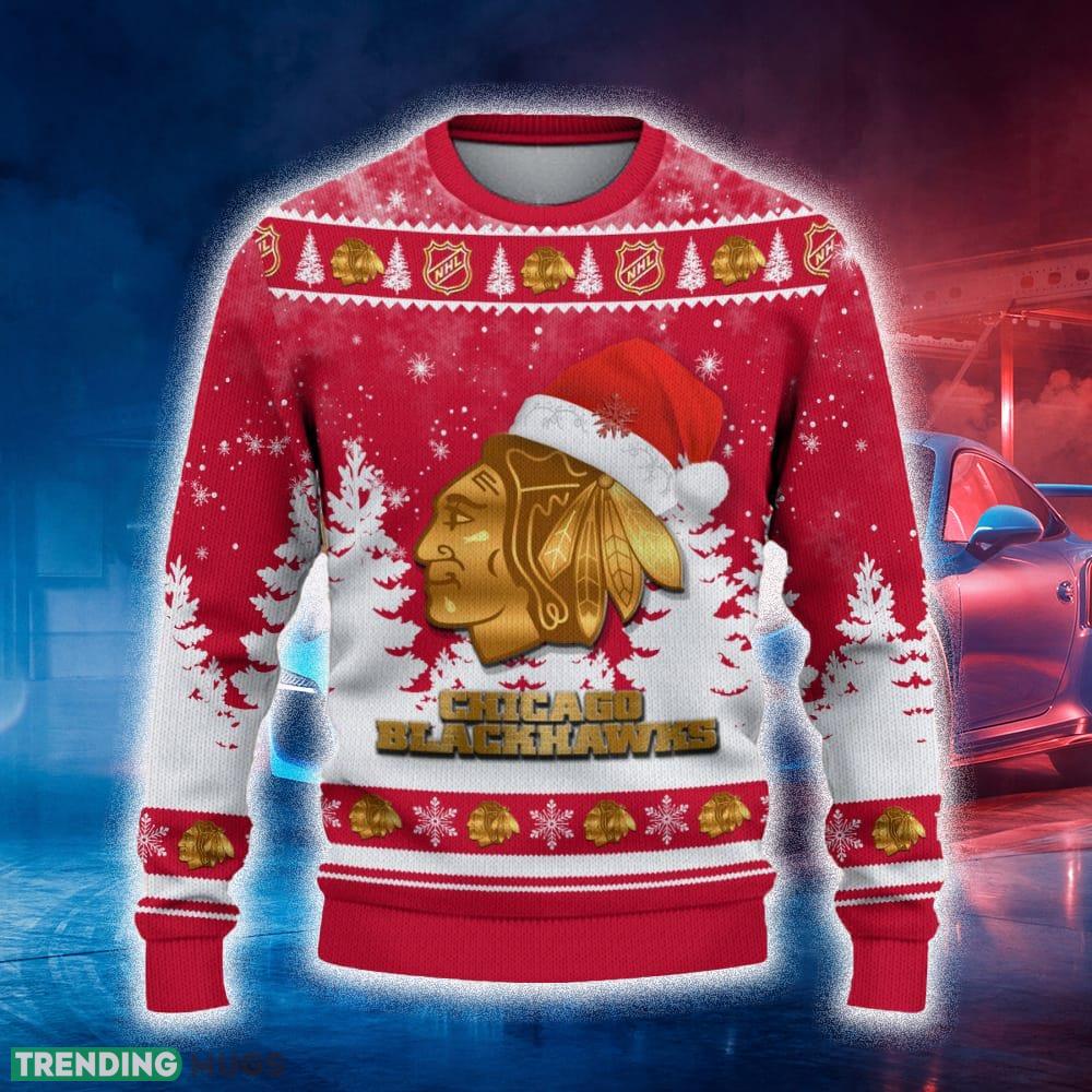 Chicago Blackhawks Ugly Christmas Sweater Tree Santa Hat Car For Fans Gift Familys Holidays Informations: