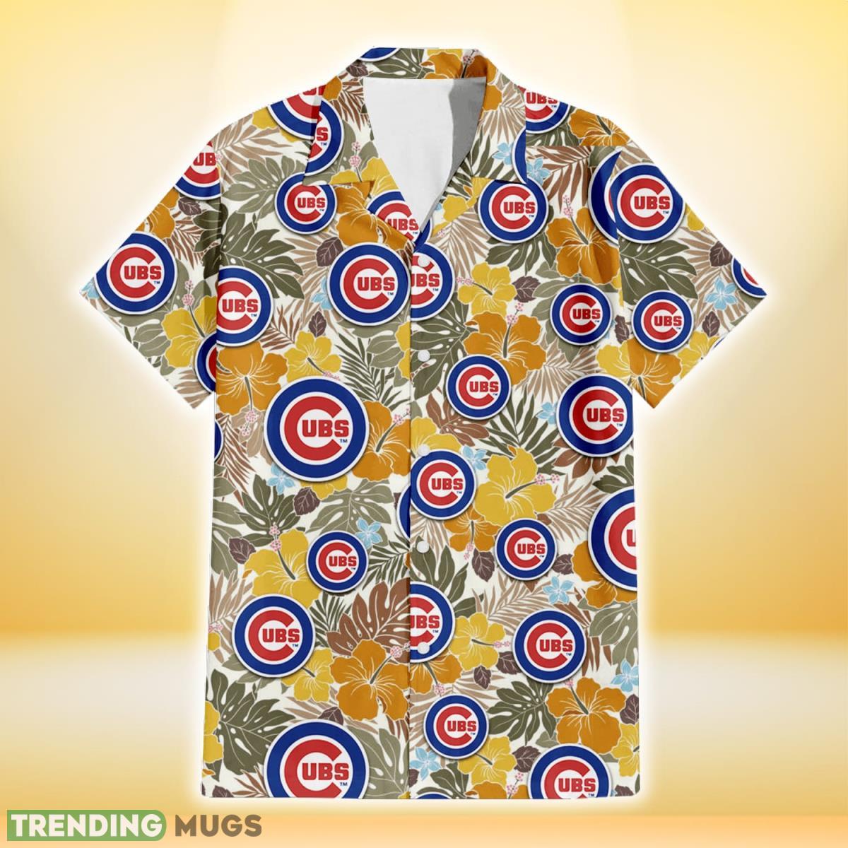 Some of the Chicago Cubs Brown Yellow Hibiscus White Background 3D Hawaiian Shirt Gift For Fans photos