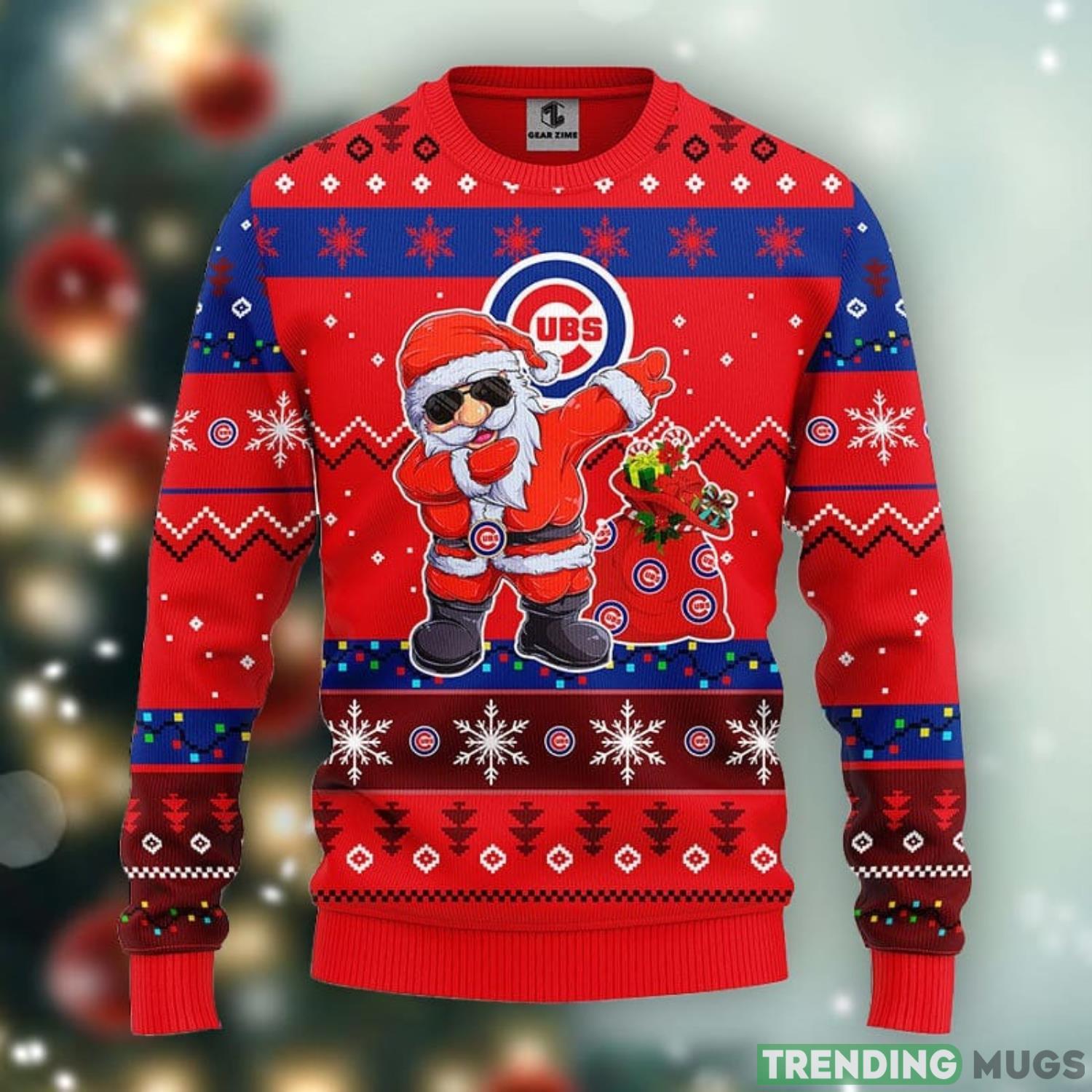 Get into the holiday spirit in the most stylish and festive way possible with our Chicago Cubs Dabbing Santa Claus Christmas Ugly Sweater! This 3D Christmas Xmas Sweater is the perfect addition to your winter wardrobe, combining the coziness of a sweater with the fun and unique design of a holiday-themed print.