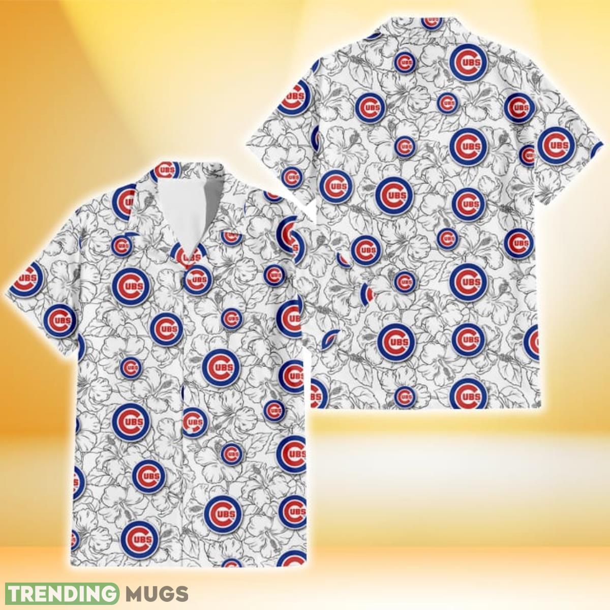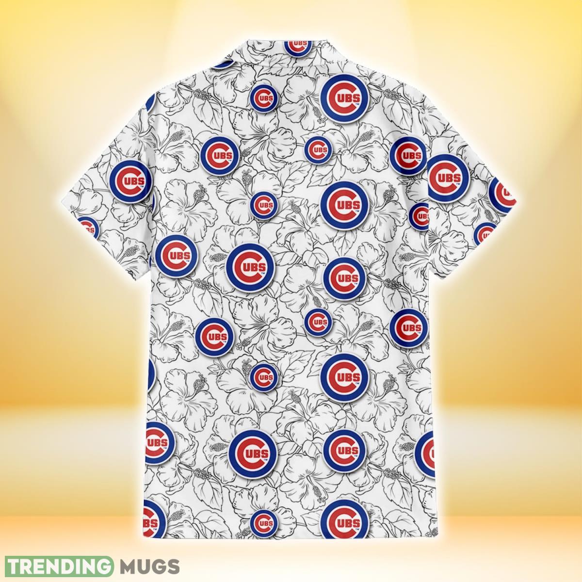 Chicago Cubs White Sketch Hibiscus Pattern White Background 3D Hawaiian Shirt Gift For Fans Details: