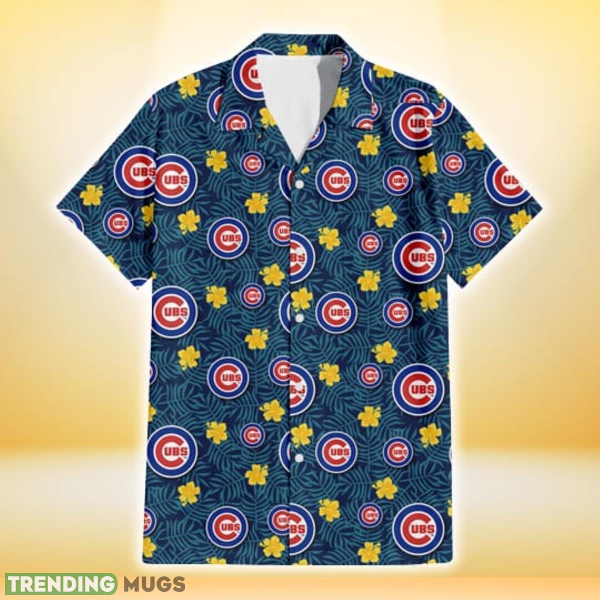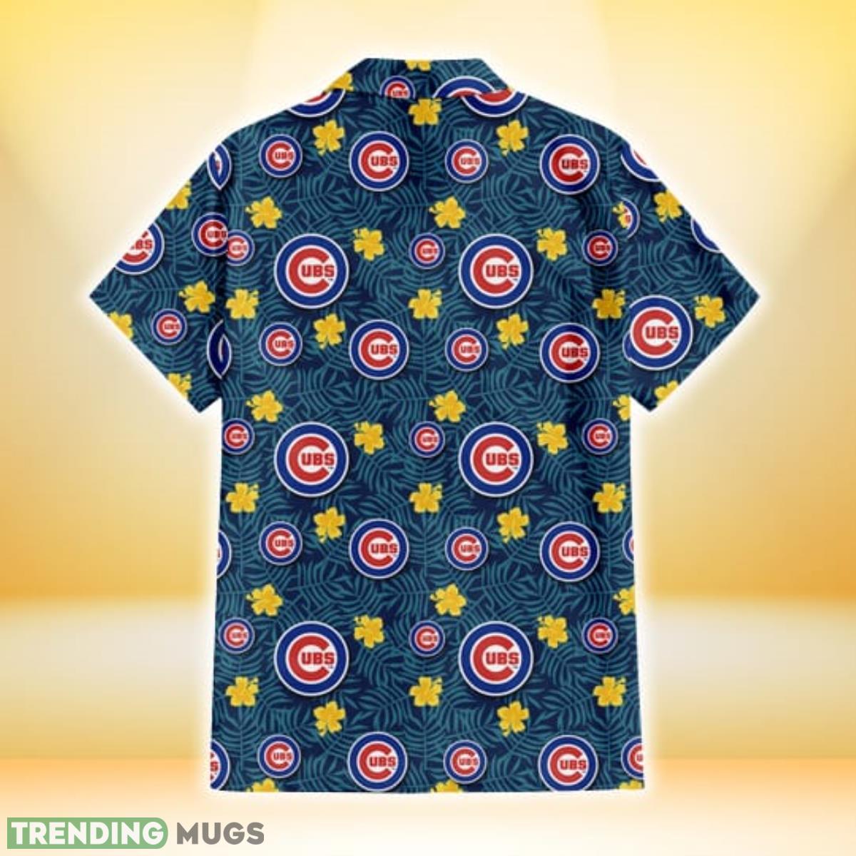 Chicago Cubs Yellow Hibiscus Cadet Blue Leaf Navy Background 3D Hawaiian Shirt Gift For Fans Details: