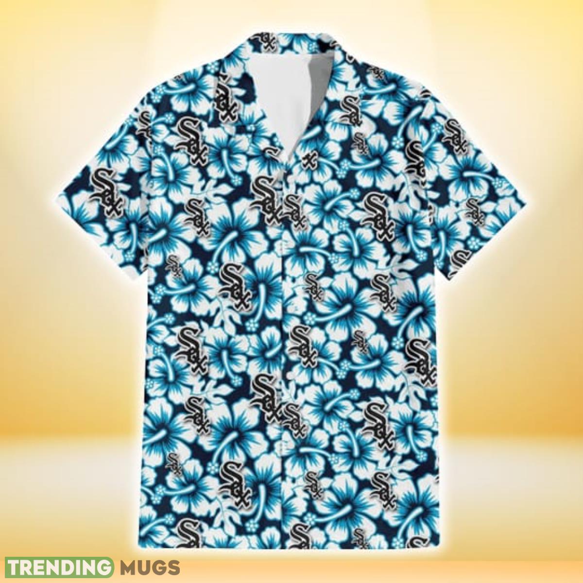 Some of the Chicago White Sox Blue Line White Hibiscus Black Background 3D Hawaiian Shirt Gift For Fans photos
