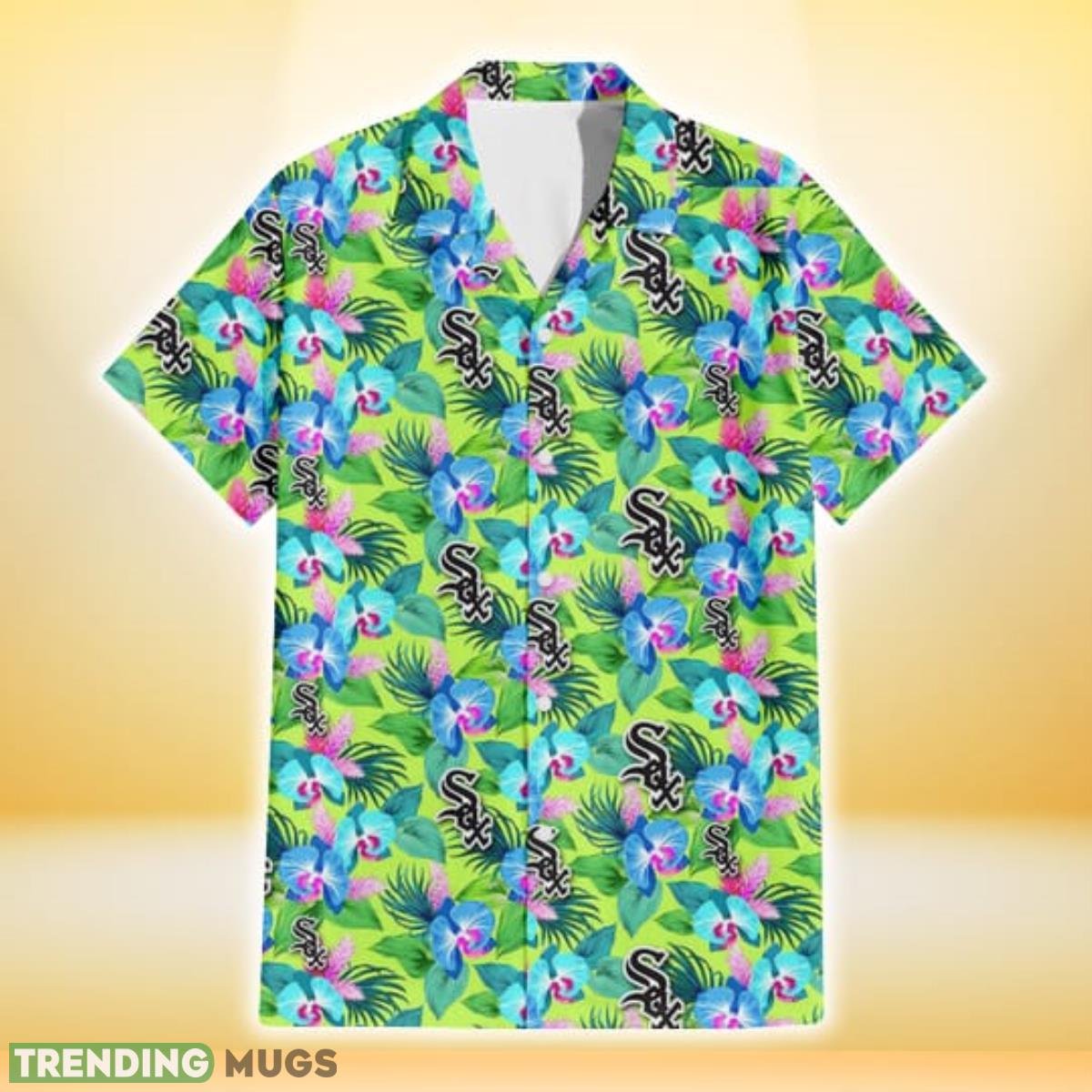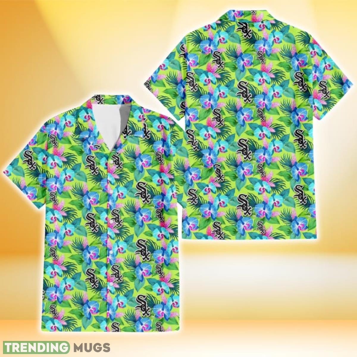 Chicago White Sox Blue Orchid Green Pink Leaf Green Background 3D Hawaiian Shirt Gift For Fans Product Photo 1