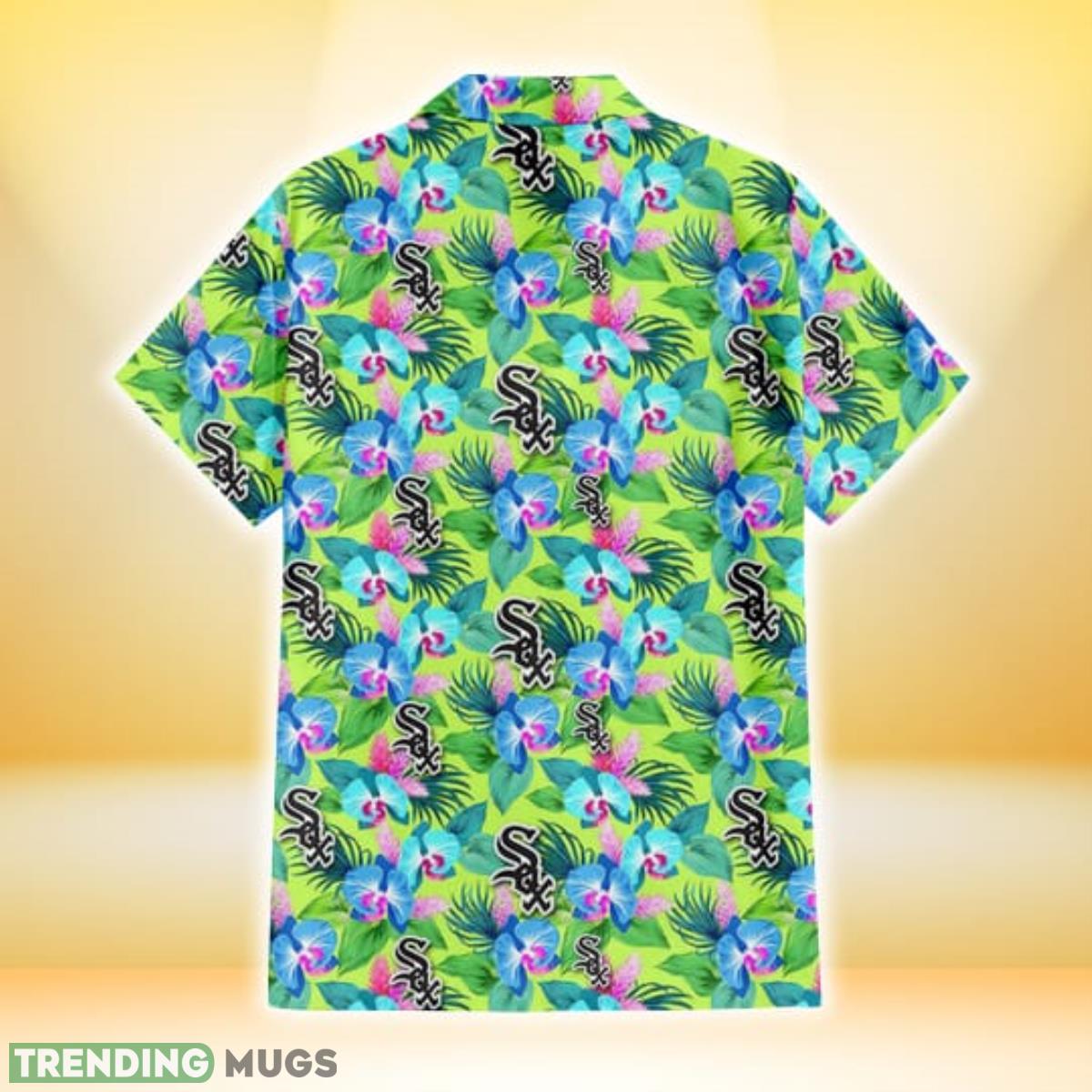 Chicago White Sox Blue Orchid Green Pink Leaf Green Background 3D Hawaiian Shirt Gift For Fans Product Photo 2