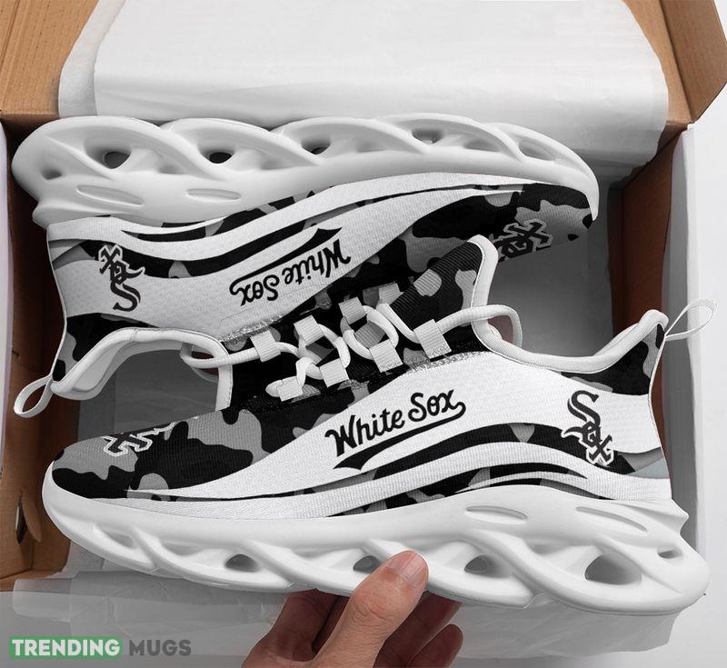 This Chicago White Sox Camo Pattern Max Soul Shoes Runway Chunky Sneakers is a breathable, lightweight, and comfortable casual outdoor shoe that has a unique design. It is made of a mesh fabric which makes it sweat absorbent and breathable, while the rubber bottom ensures traction, comfort, and durability. It is available in two colors: black or white sole. There are two styles of shoelace holes so you can choose your preference.
